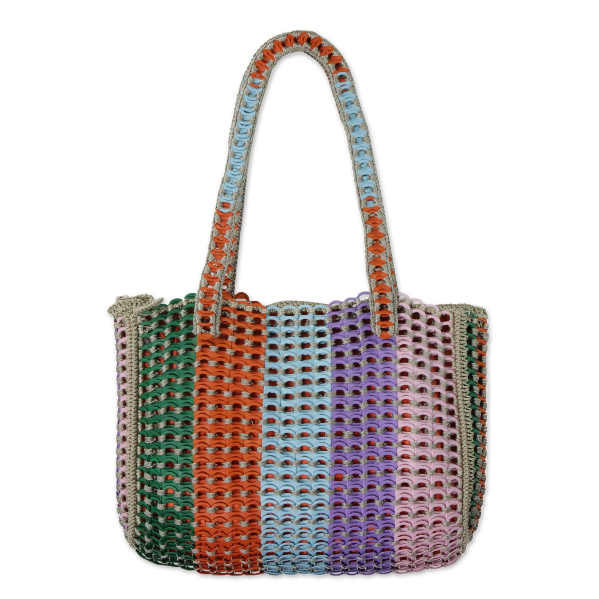 Multicolored Recycled Soda Pop Top Shoulder Bag from Brazil, 'Rainbow Style'