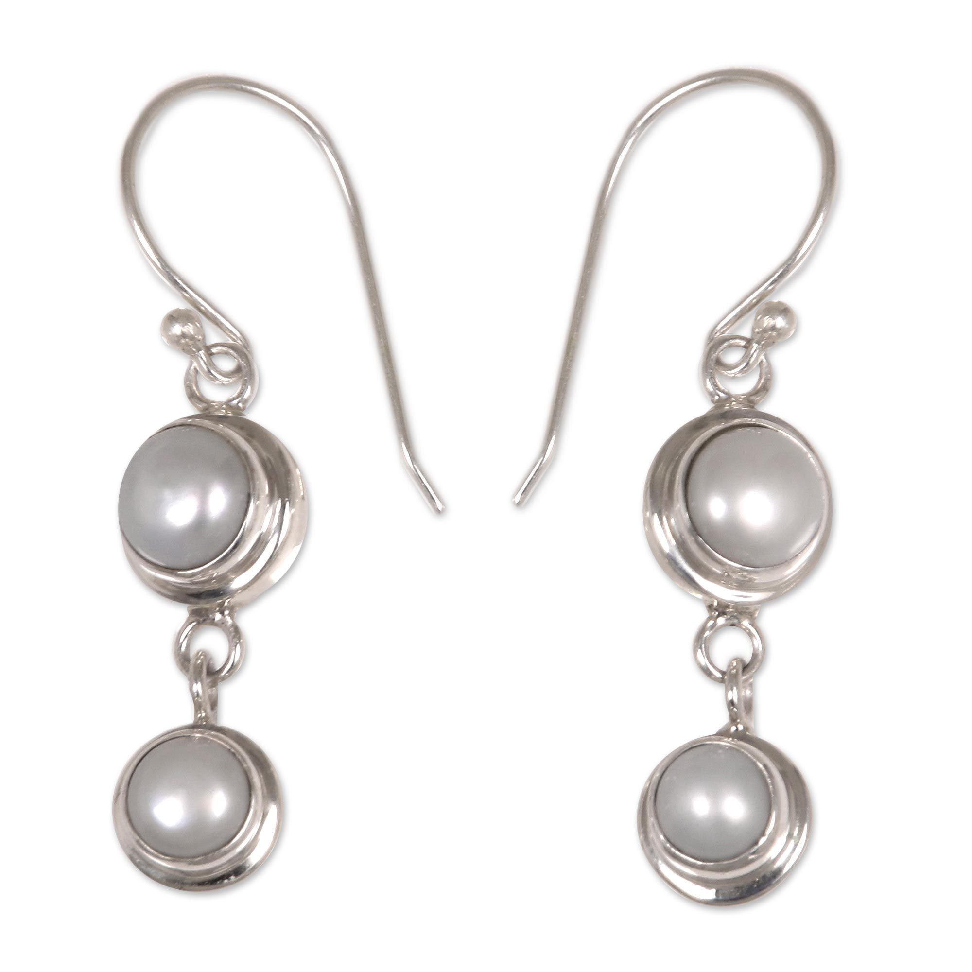 Pearl Sterling Silver Dangle Earrings, 'Two Full Moons'