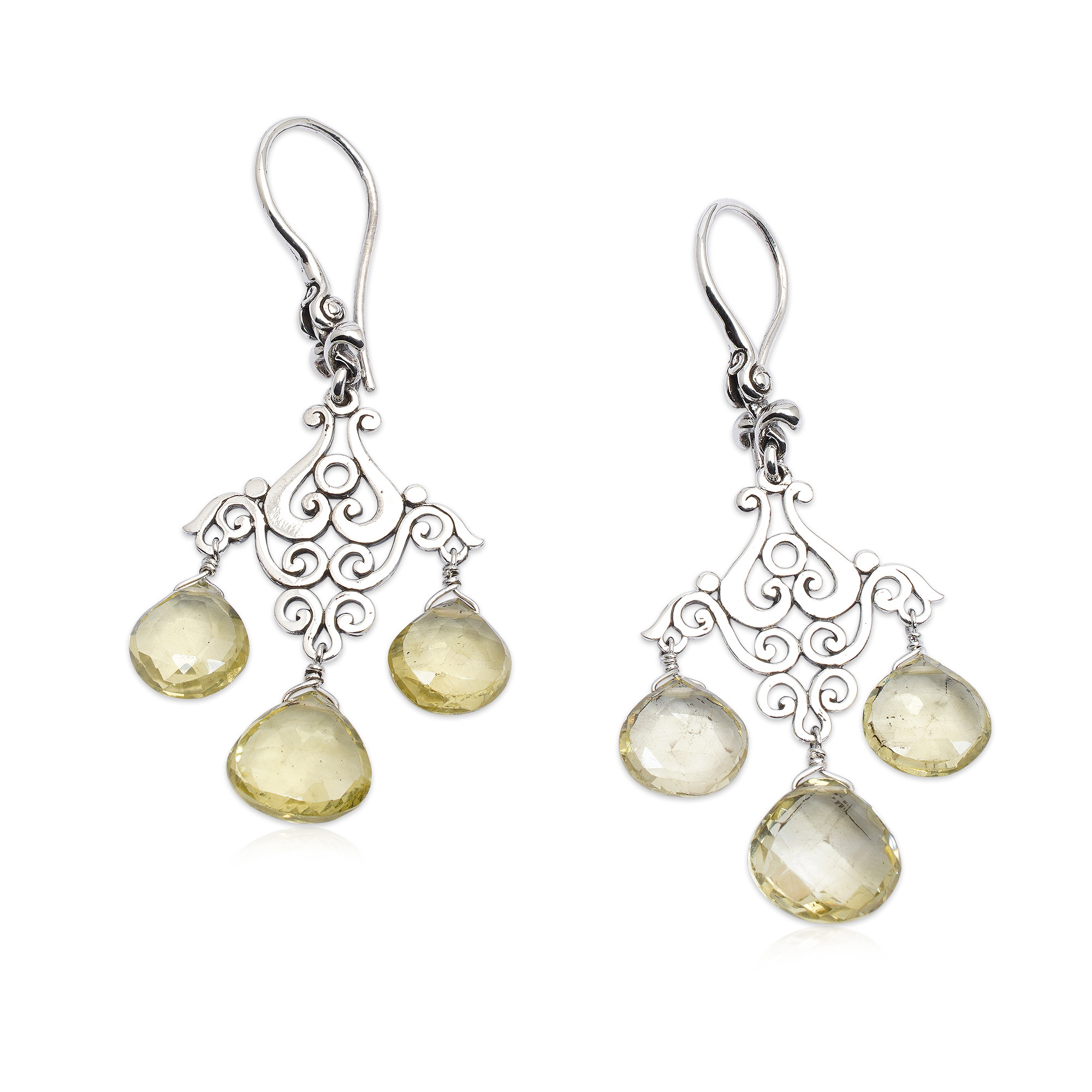 Polished Lemon Quartz Chandelier Earrings Crafted in Bali, 'Gala of Felicity'