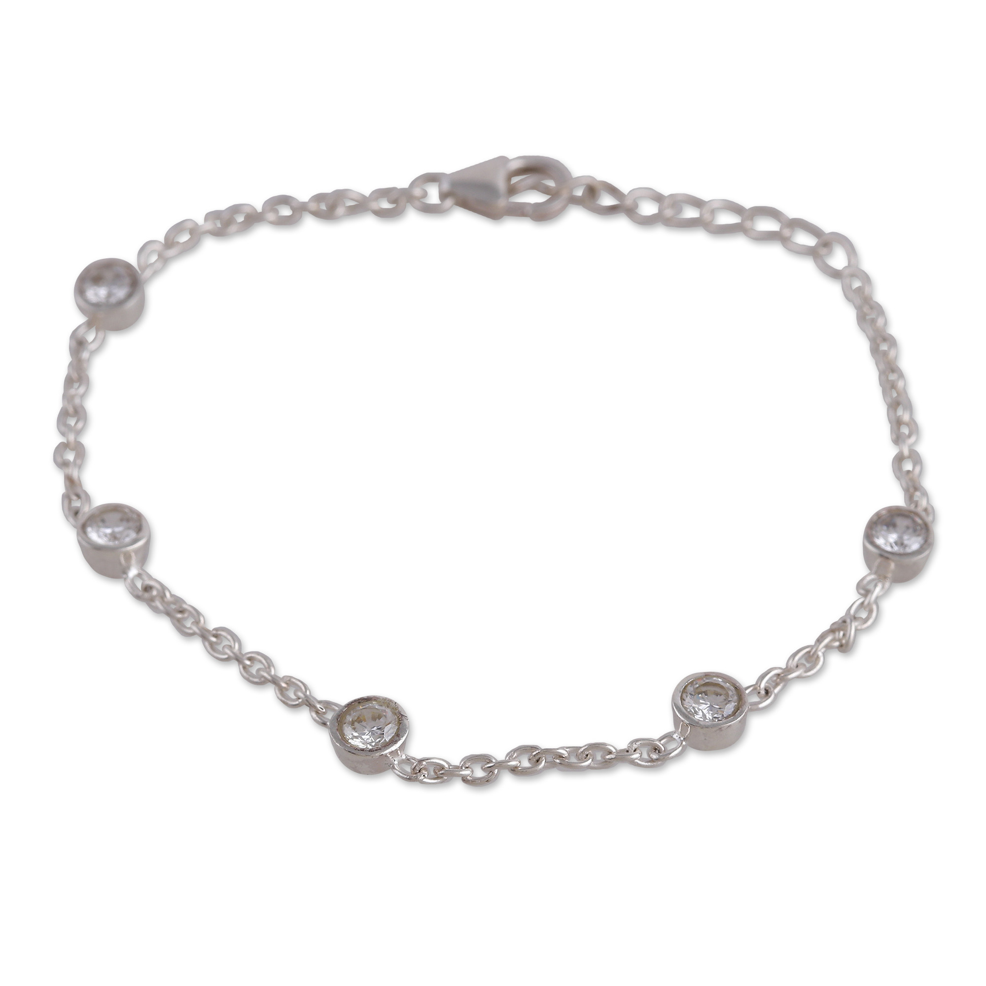 Polished Sterling Silver and Cubic Zirconia Link Bracelet, 'Sparkling Essence'