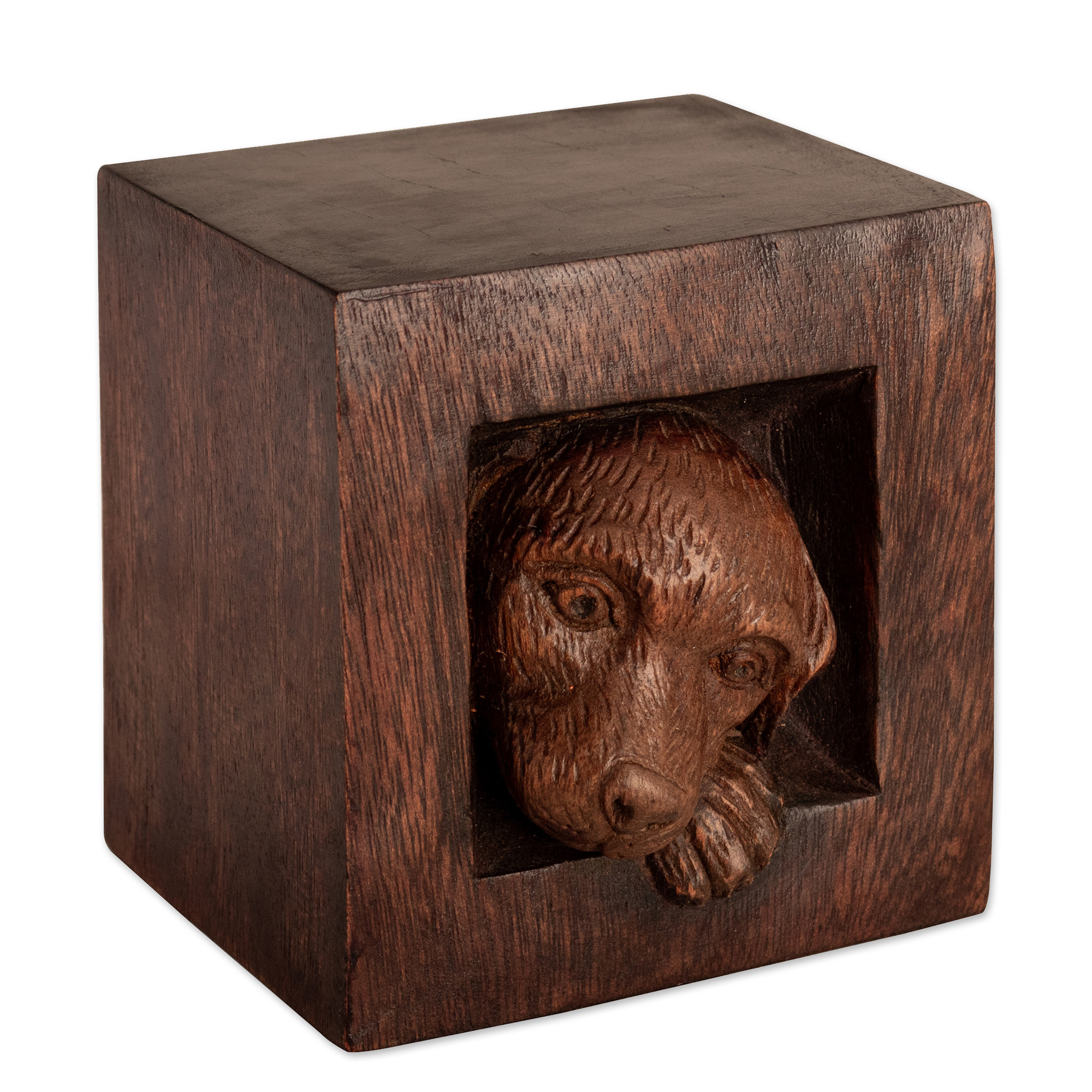 Puppy Dog-Themed Whimsical Hand-Carved Cedarwood Sculpture, 'Playful Puppy'