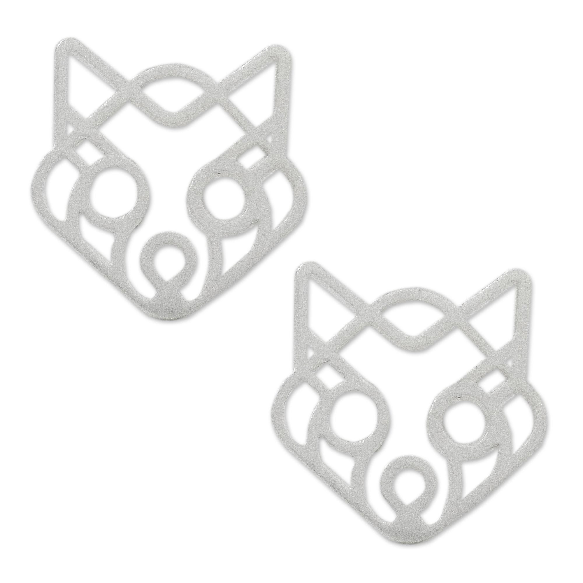 Raccoon Themed Sterling Silver Button Earrings, 'Wide-Eyed Raccoon'