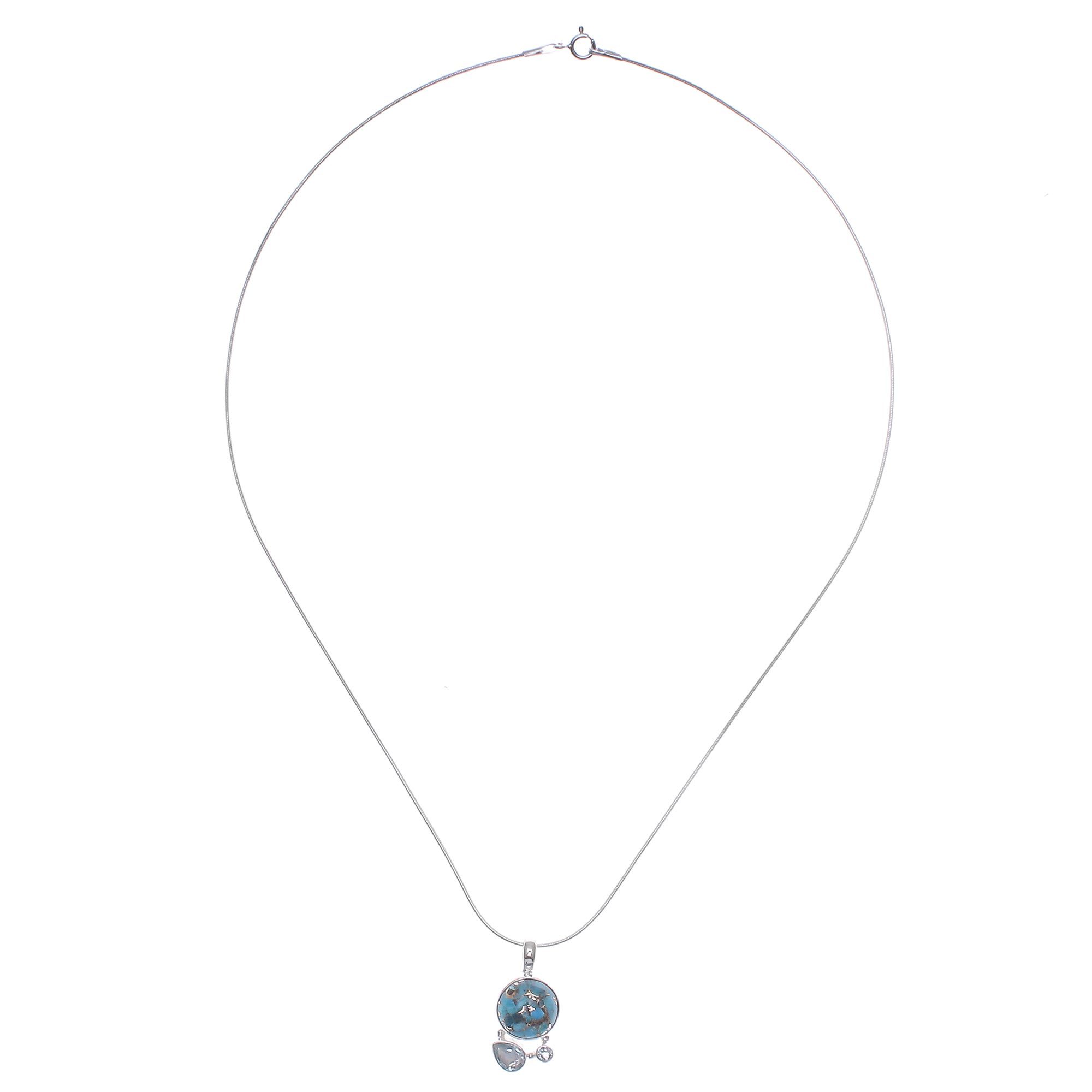 Reconstituted Turquoise and Blue Topaz Pendant Necklace, 'Love Orbit in Blue'
