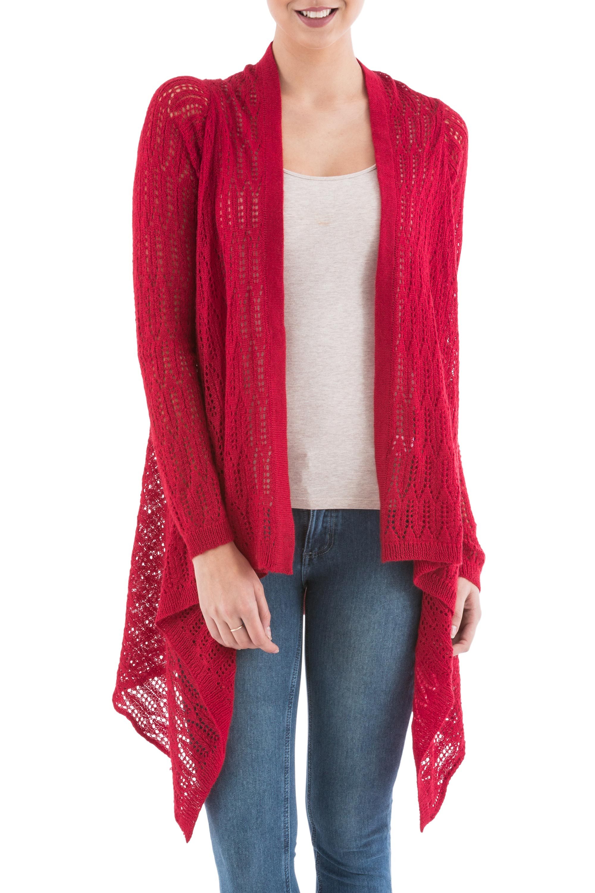 Red Sidetail Cardigan Sweater from Peru, 'Red Mirage'