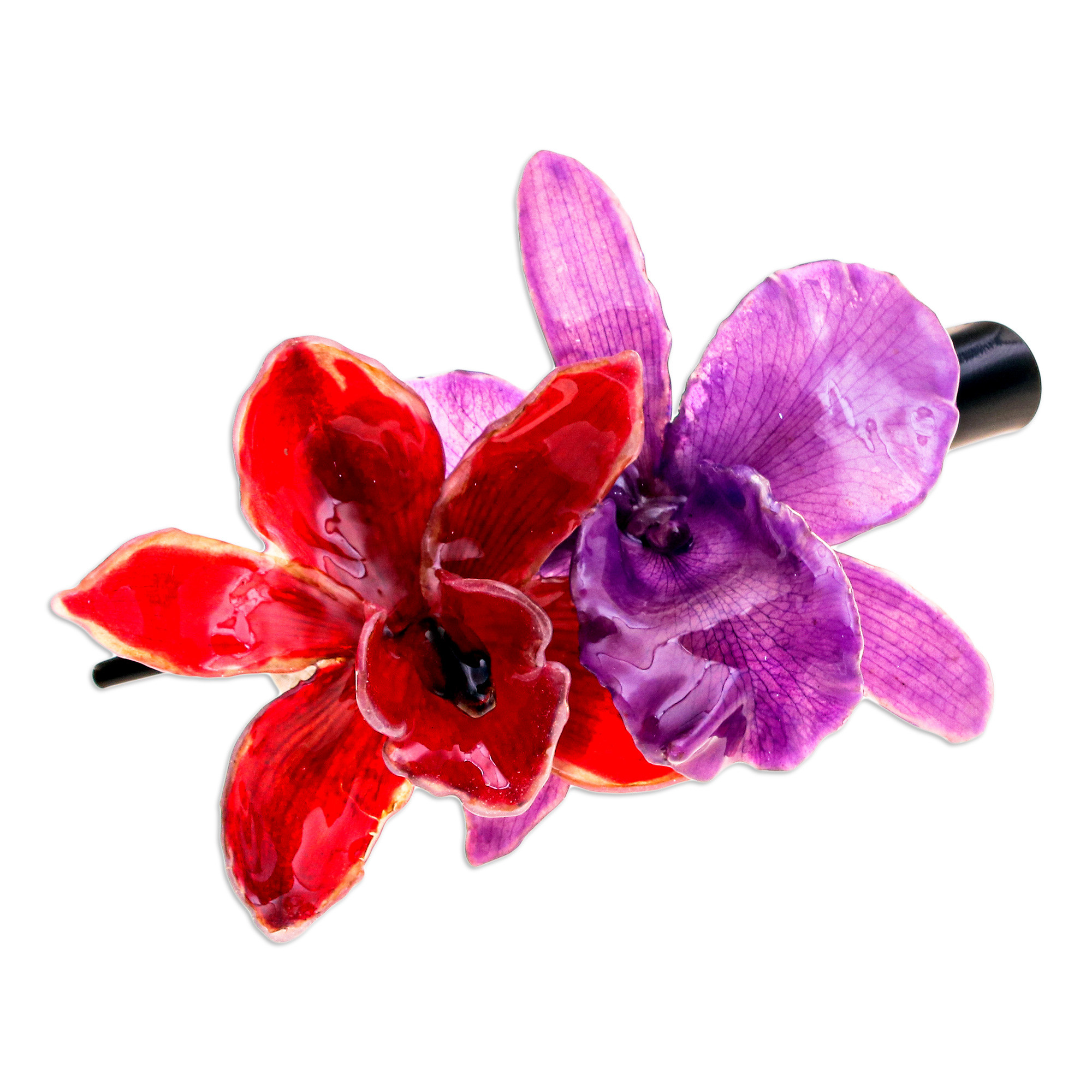 Resin-Coated Red and Purple Natural Cattleya Bloom Hair Clip, 'Oneiric Cattleya'