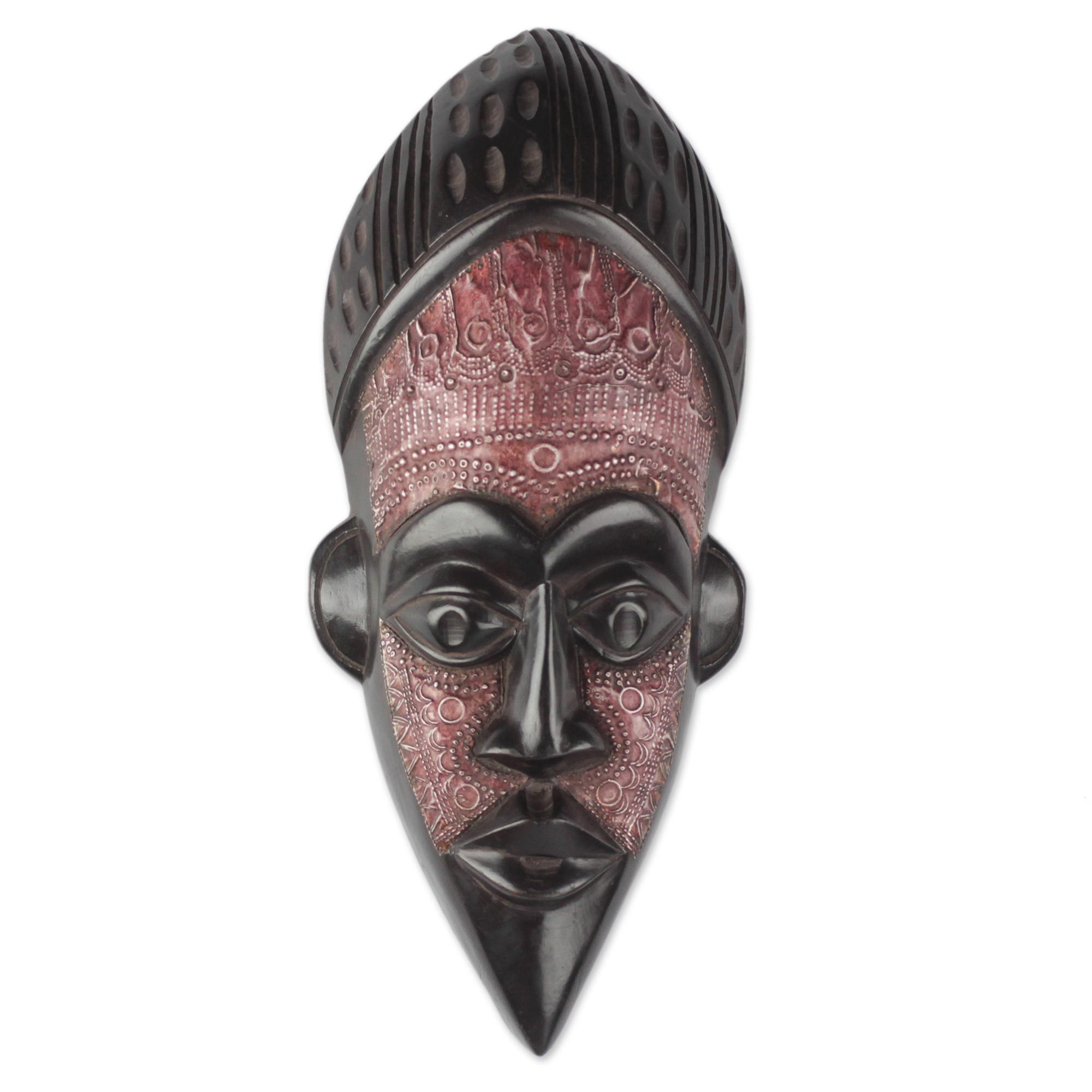 Sese Wood and Aluminum African Mask from Ghana, 'Wisdom of Ghana'