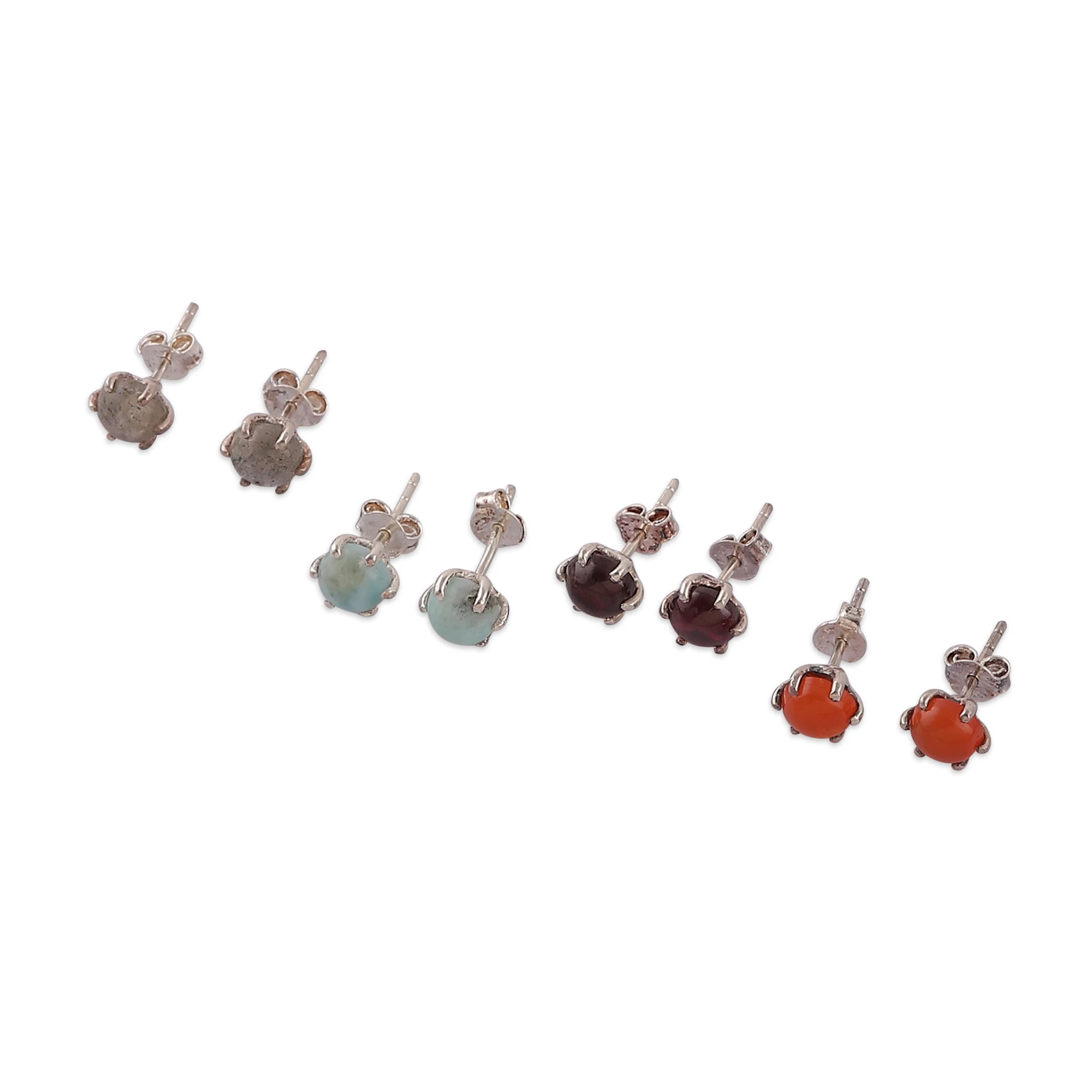Set of 4 Carnelian Garnet Labradorite Larimar Stud Earrings, 'Timeless Collection'