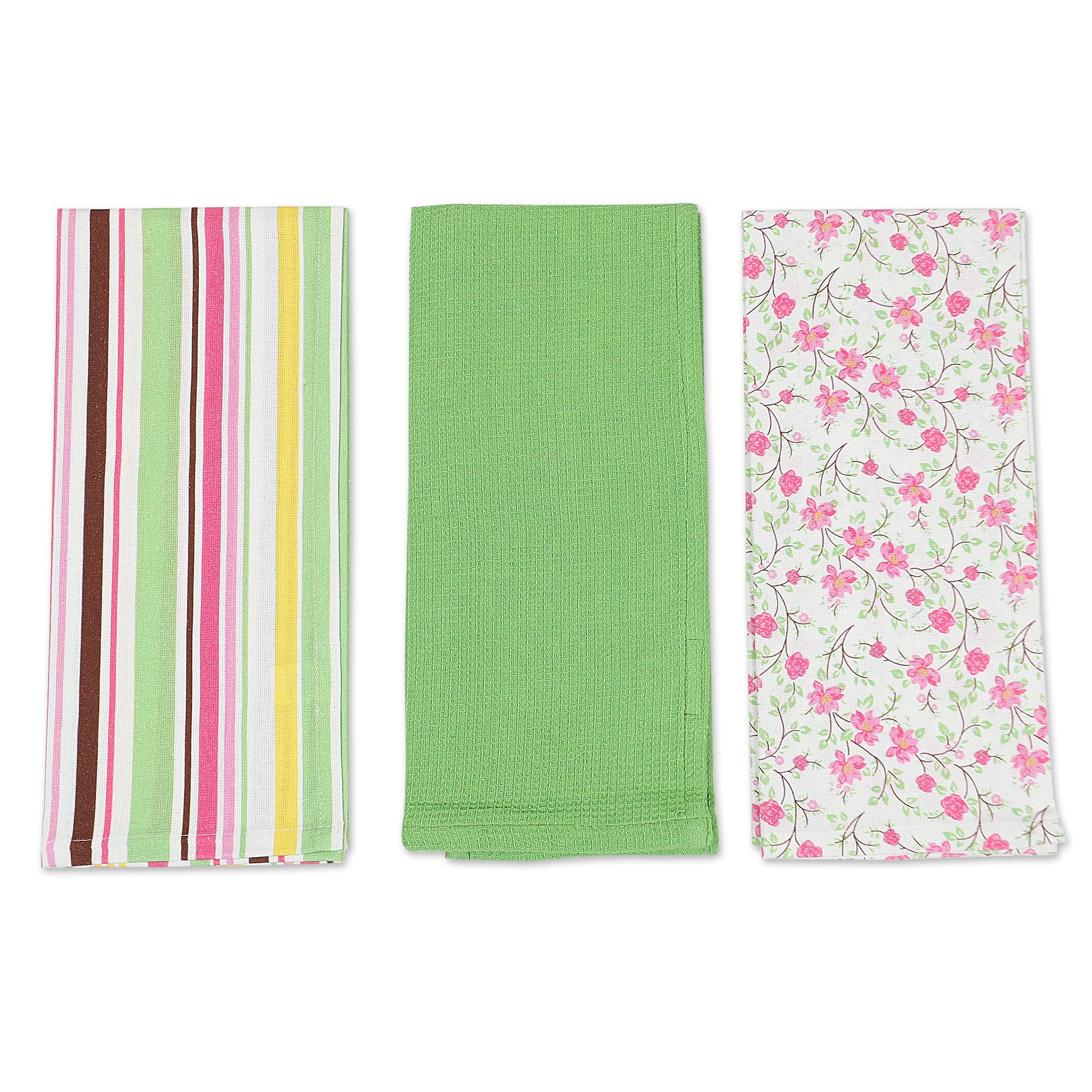Set of Three Colorful Cotton Dish Towels with Printed Motifs, 'Sweet Happiness'