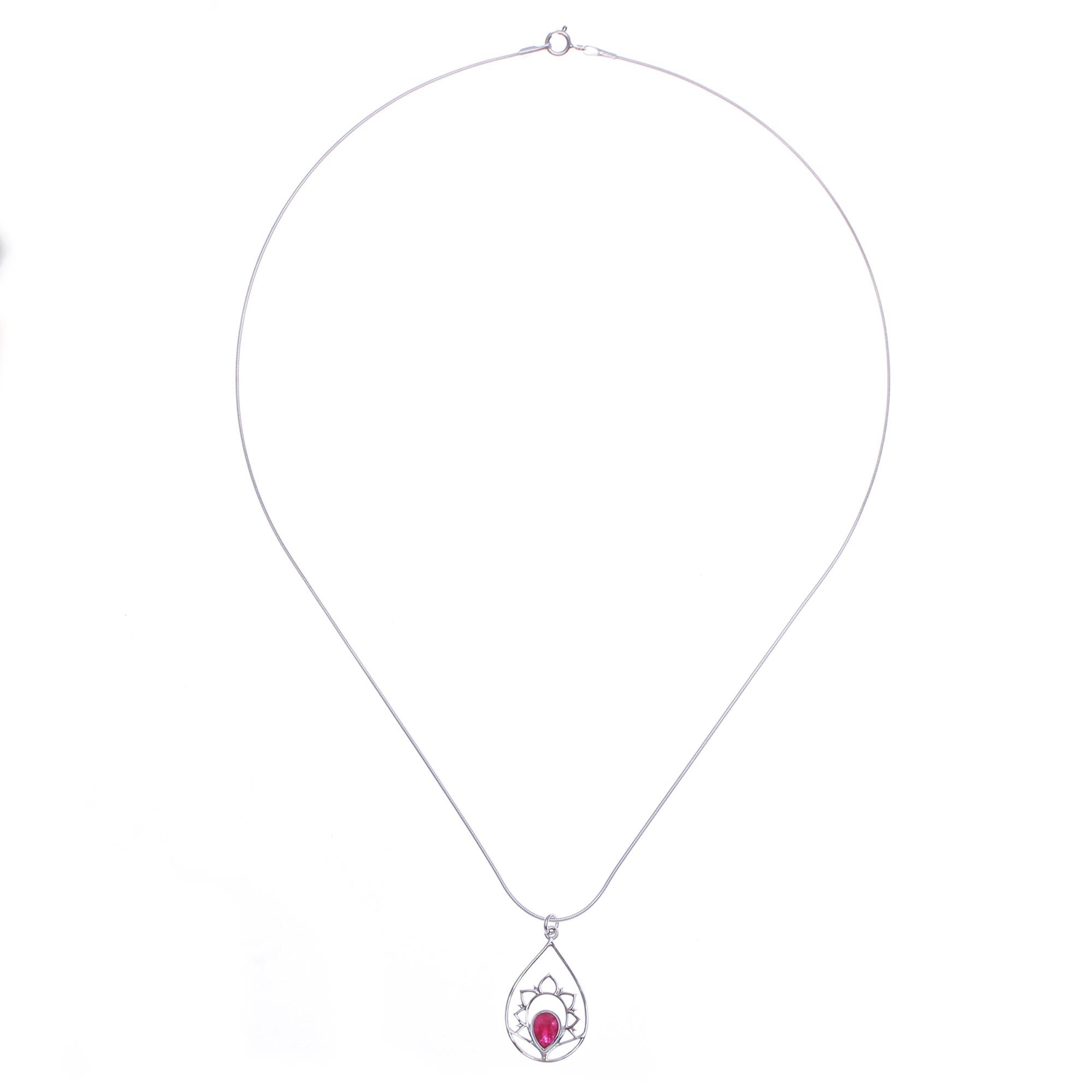 Sillimanite and Sterling Silver Pendant Necklace, 'Sense of Calm in Pink'