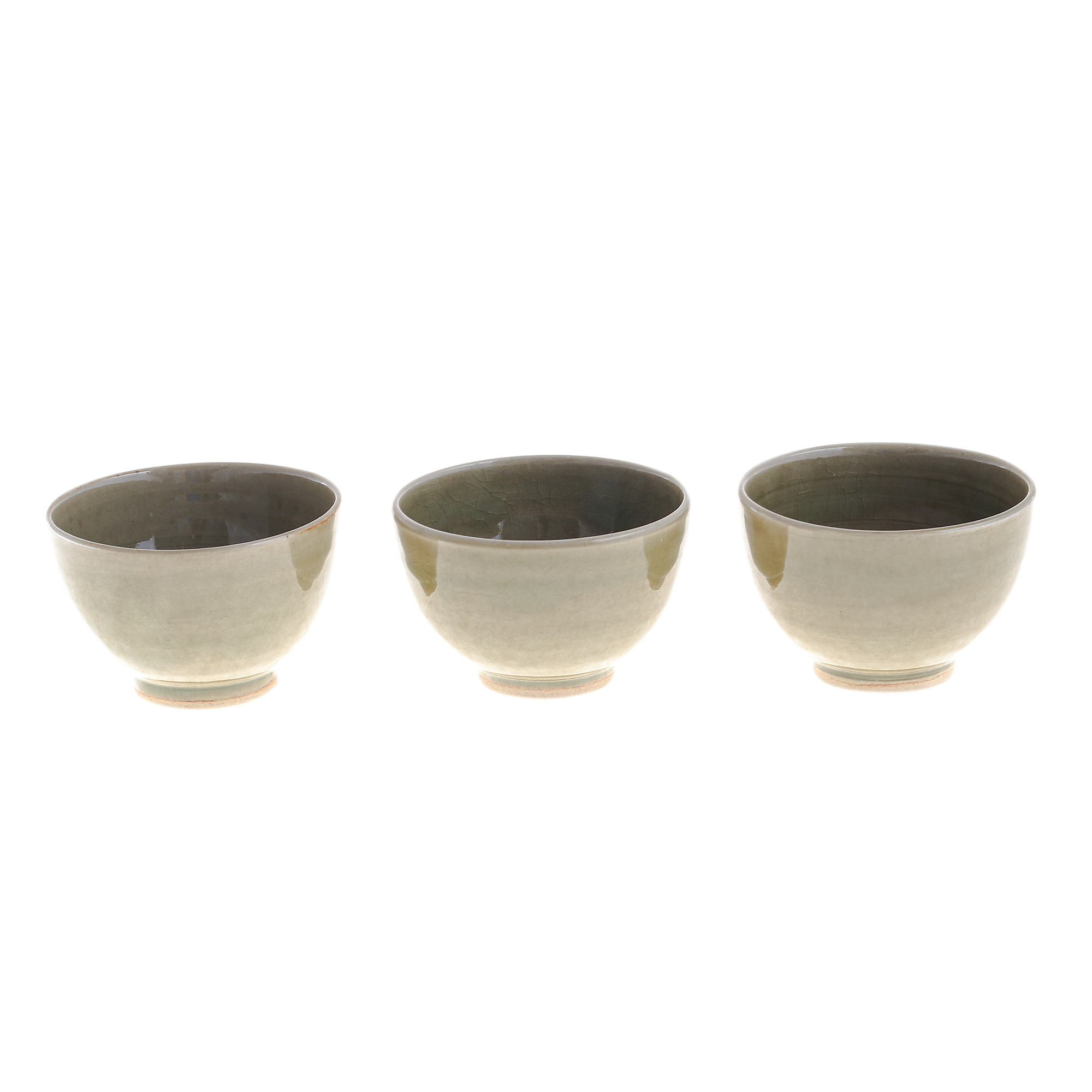 This set of three small ceramic bowls is perfect for prepping ingredients, serving condiments and more. Duangkamol in Thailand designs the bowls, which feature a simple footed design and an earthy green glaze.