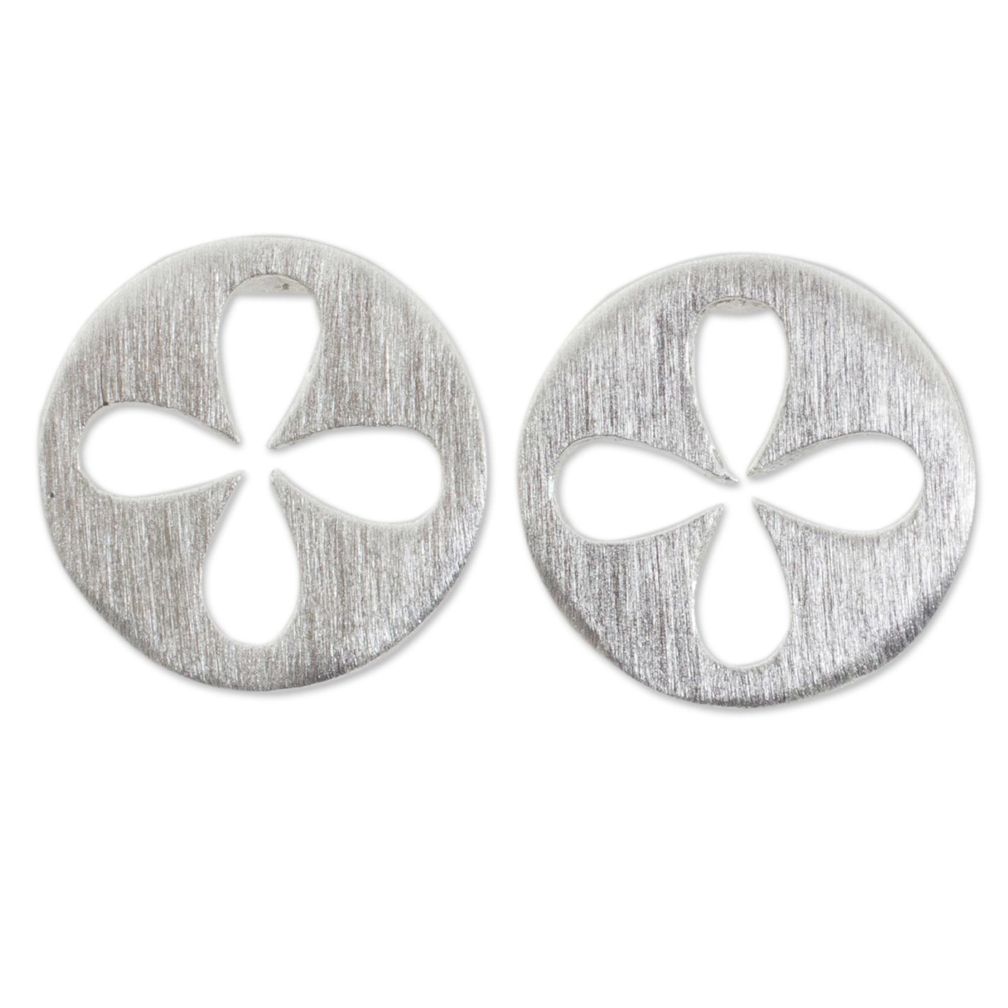 Sterling silver stud earrings, 'Clover Windows' - Small Stud Earrings in Brushed Sterling Silver
