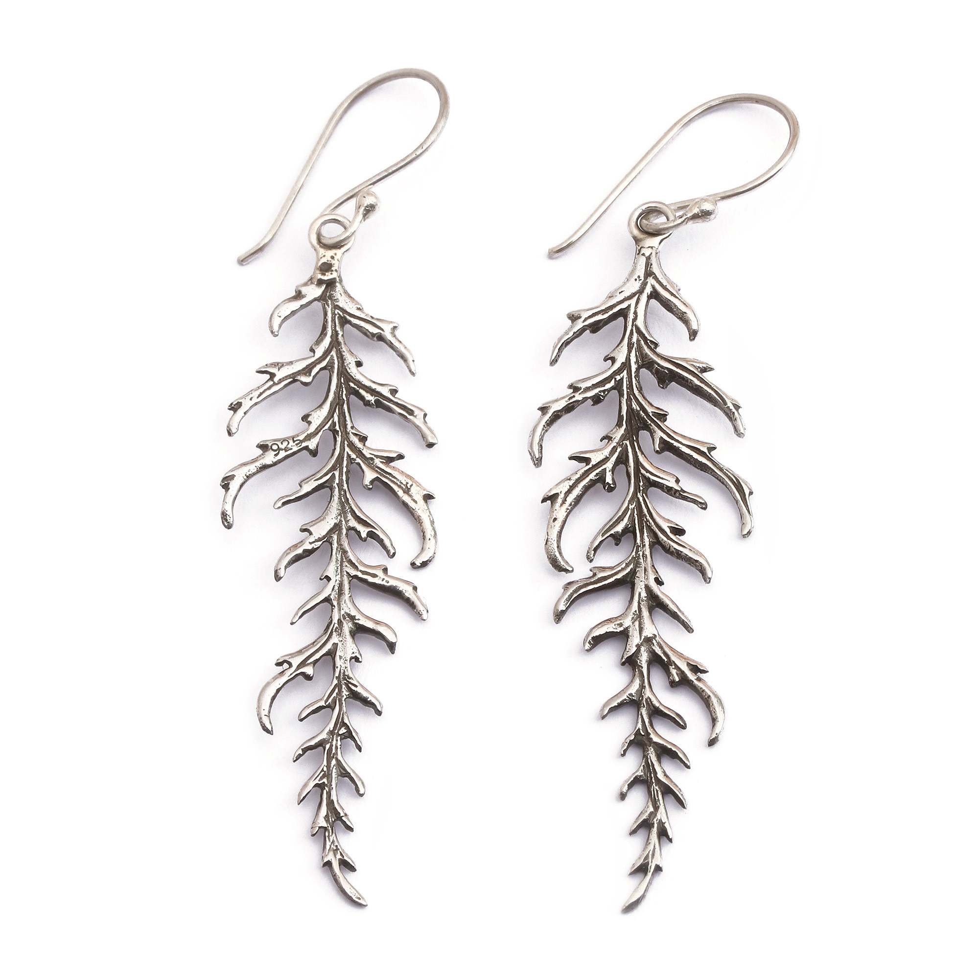 Spruce Tree Leaf-Themed Sterling Silver Dangle Earrings, 'Oxidized Spruce'