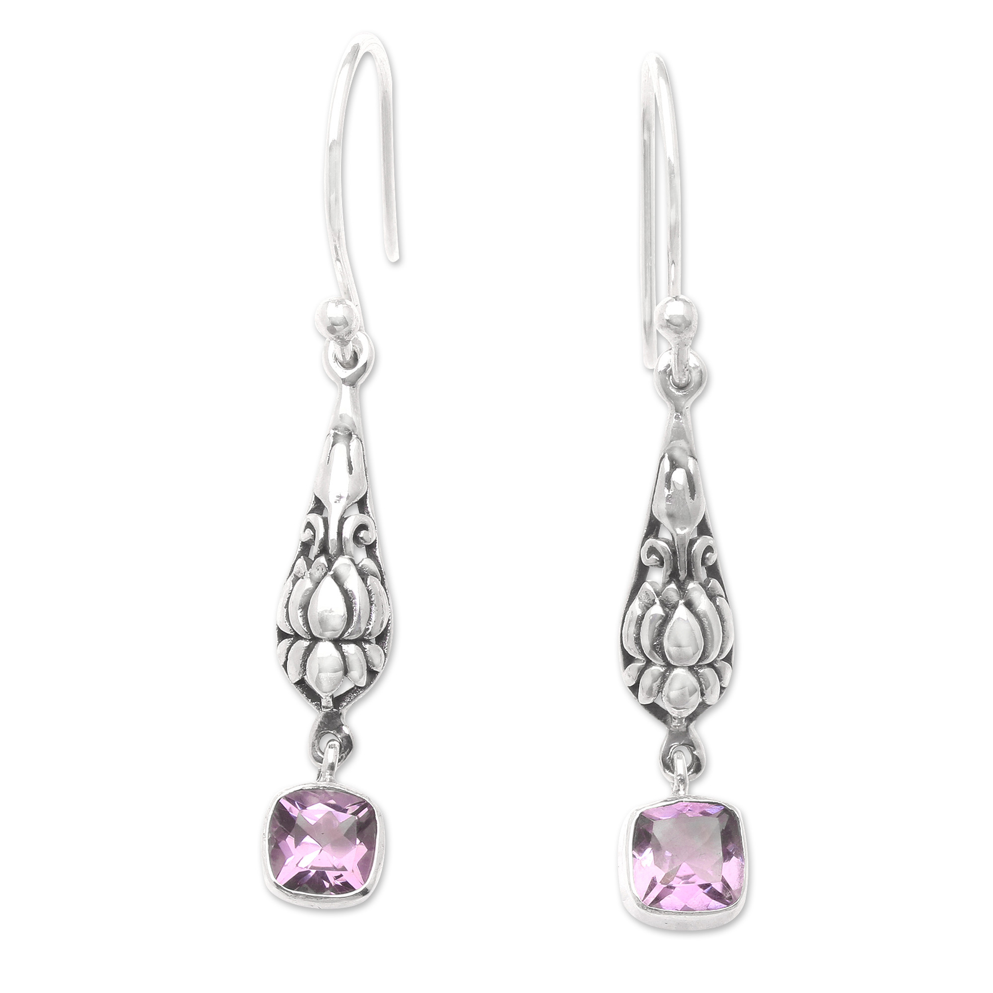 Sterling Silver and Amethyst Dangle Earrings from Bali, 'Purple Burgeon Lotus'