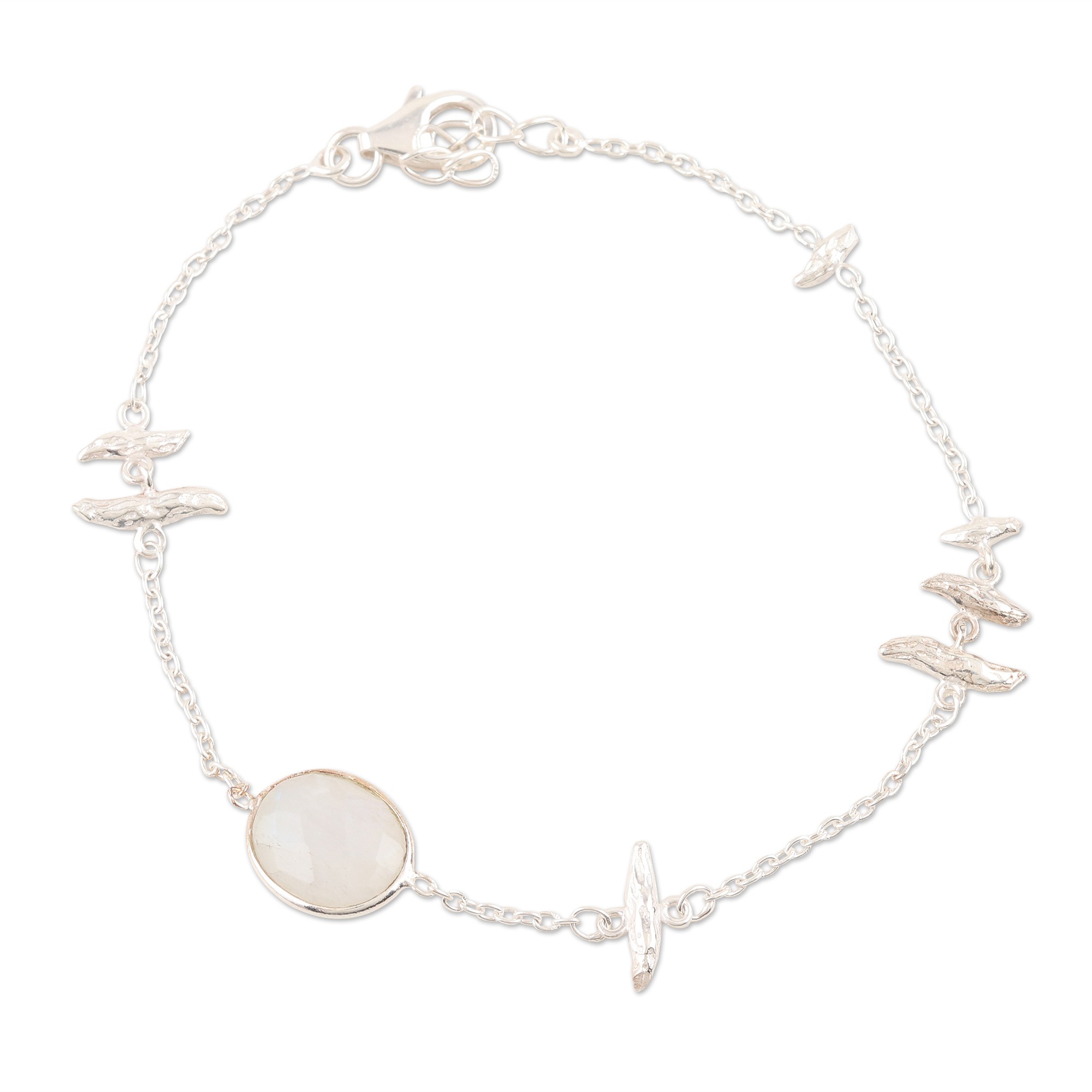 Sterling Silver and Rainbow Moonstone Pendant Bracelet, 'White Rapids'