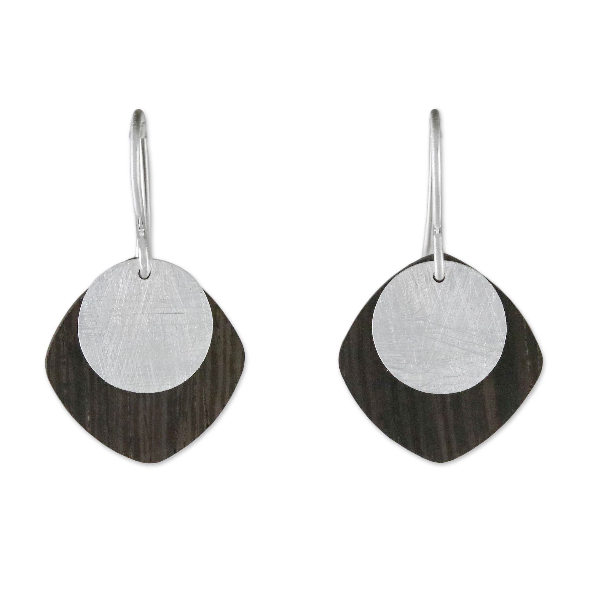 Sterling Silver and Wood Dangle Earrings from Thailand, 'Simple and Sophisticated'