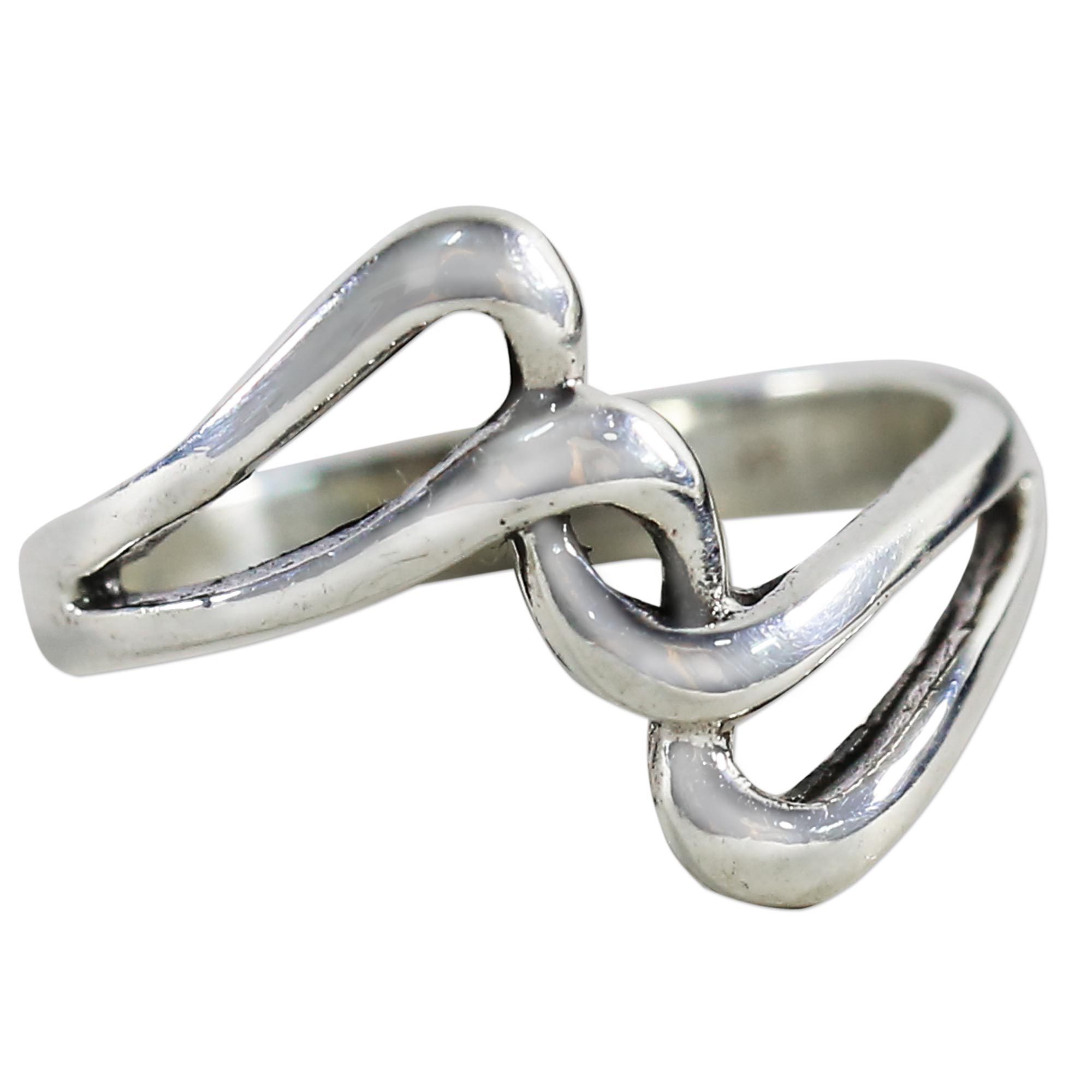 Sterling Silver Band Ring Swirls from Thailand, 'The Melody'