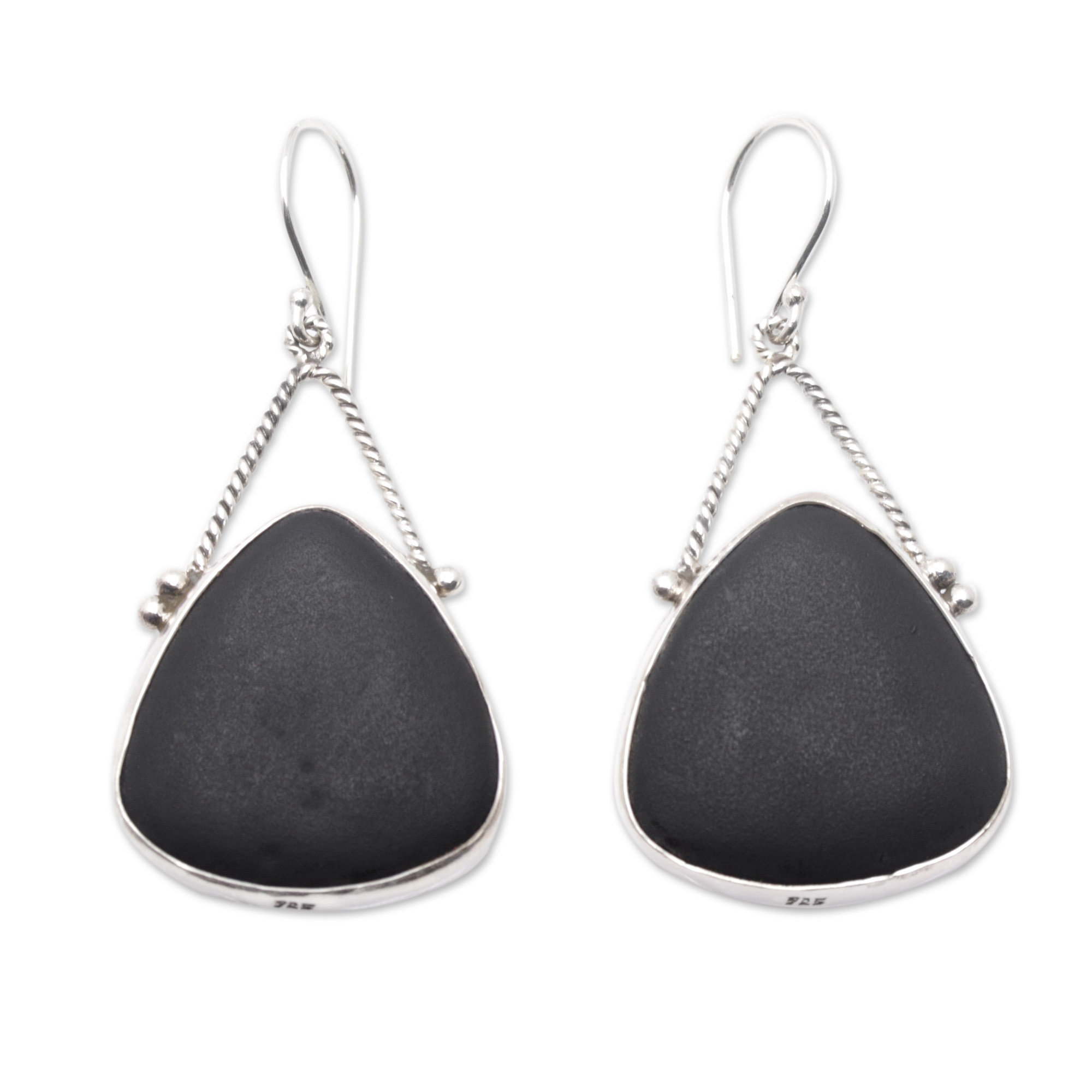 Sterling Silver Dangle Earrings with Lava Stone Made in Bali, 'Swinging Night Dream'