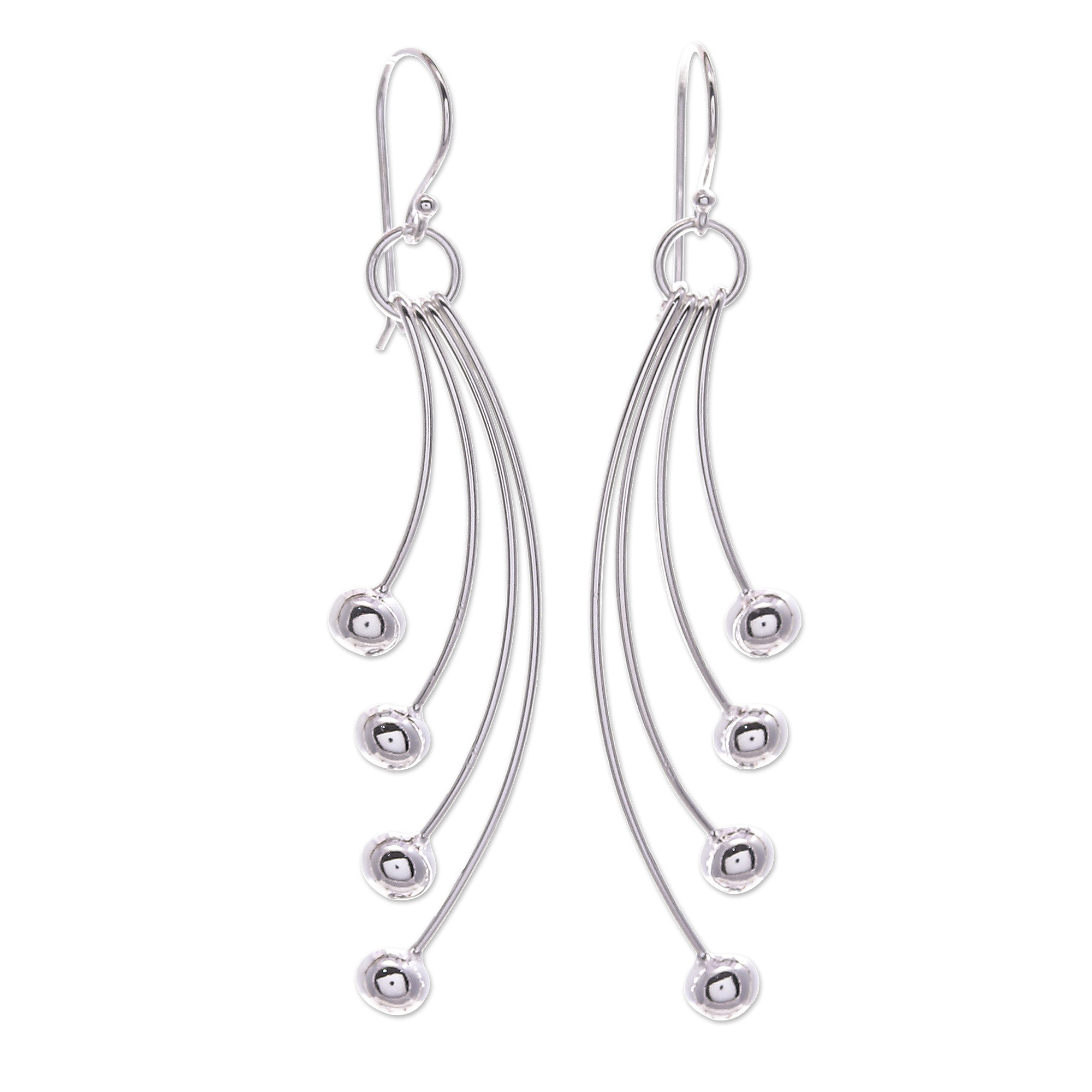 Sterling Silver Dangle Earrings with Modern Design, 'Rain of Glances'