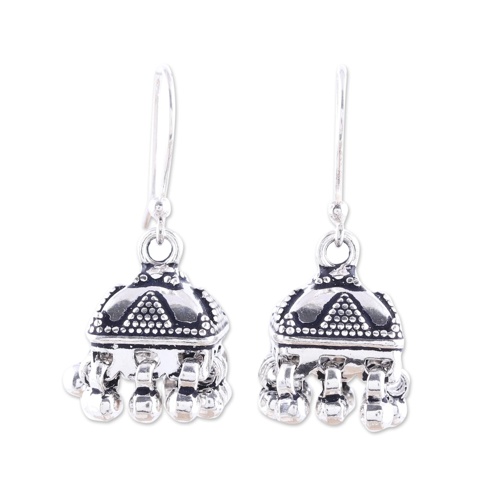 Sterling Silver Dotted Statement Jhumki Chandelier Earrings, 'Dancing Jhumki'