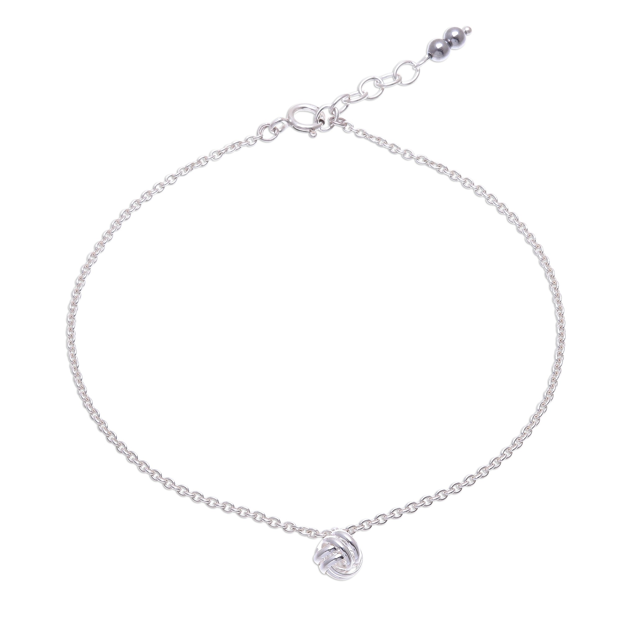 Sterling Silver Knot Charm Ankle Bracelet, 'Monkey's Paw'