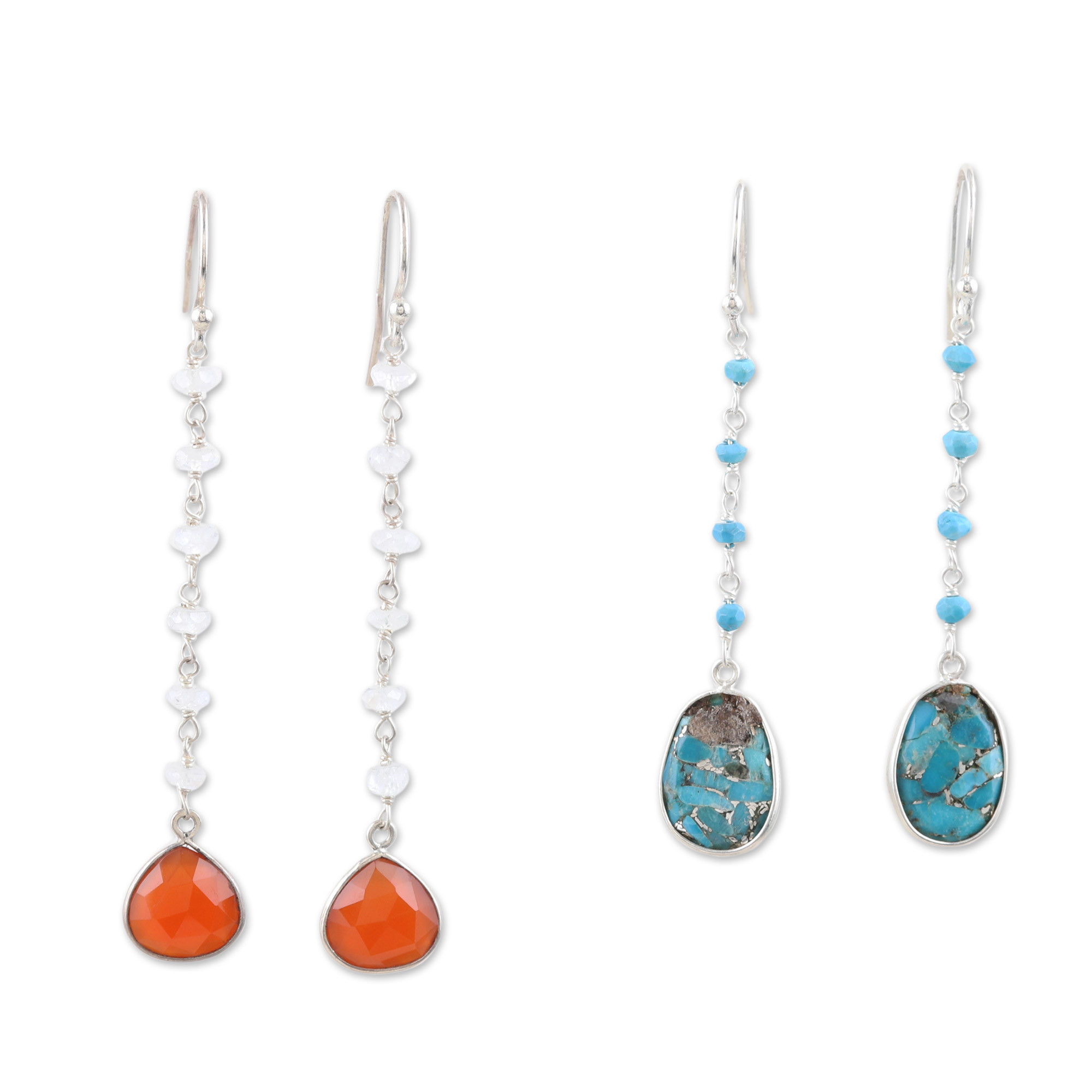 Sterling Silver Multi-Gemstone Dangle Earrings (Set of 2), 'Paradise of Luxury'