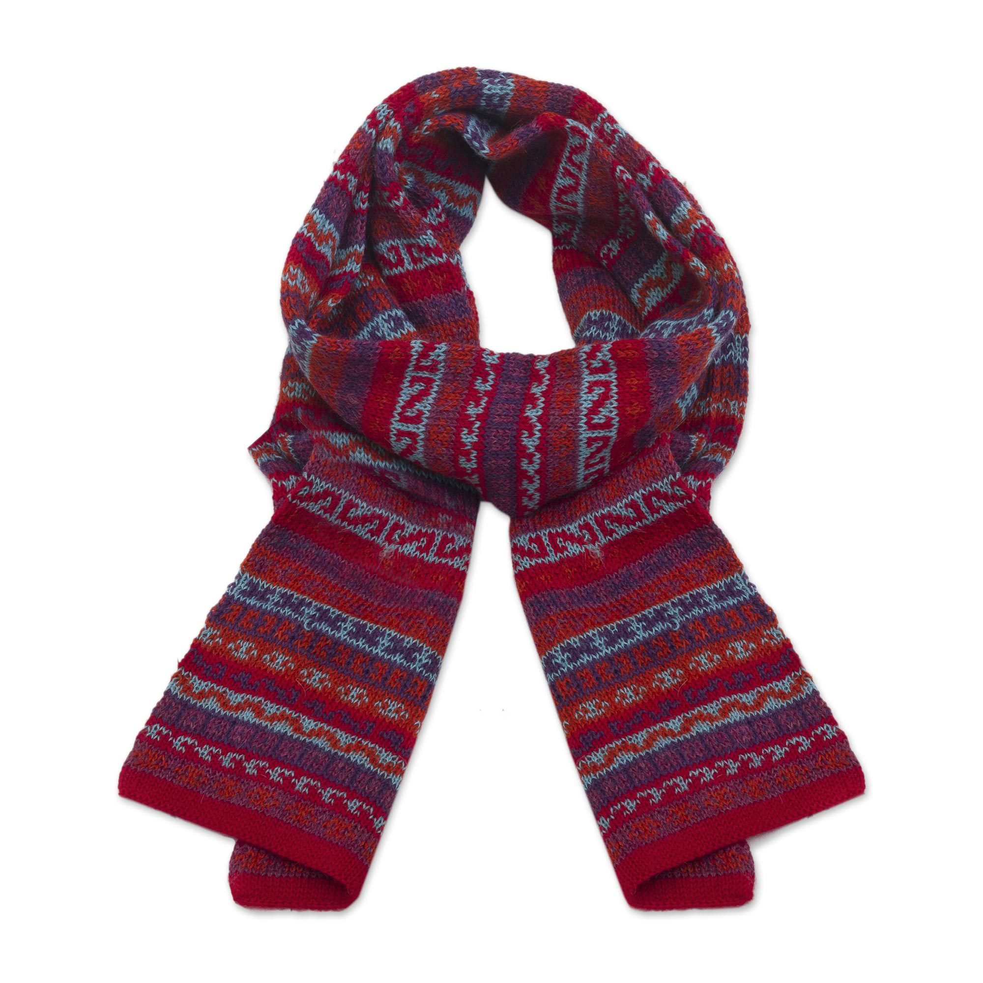 Striped 100% Alpaca Wrap Scarf Crafted in Peru, 'Andean Art'
