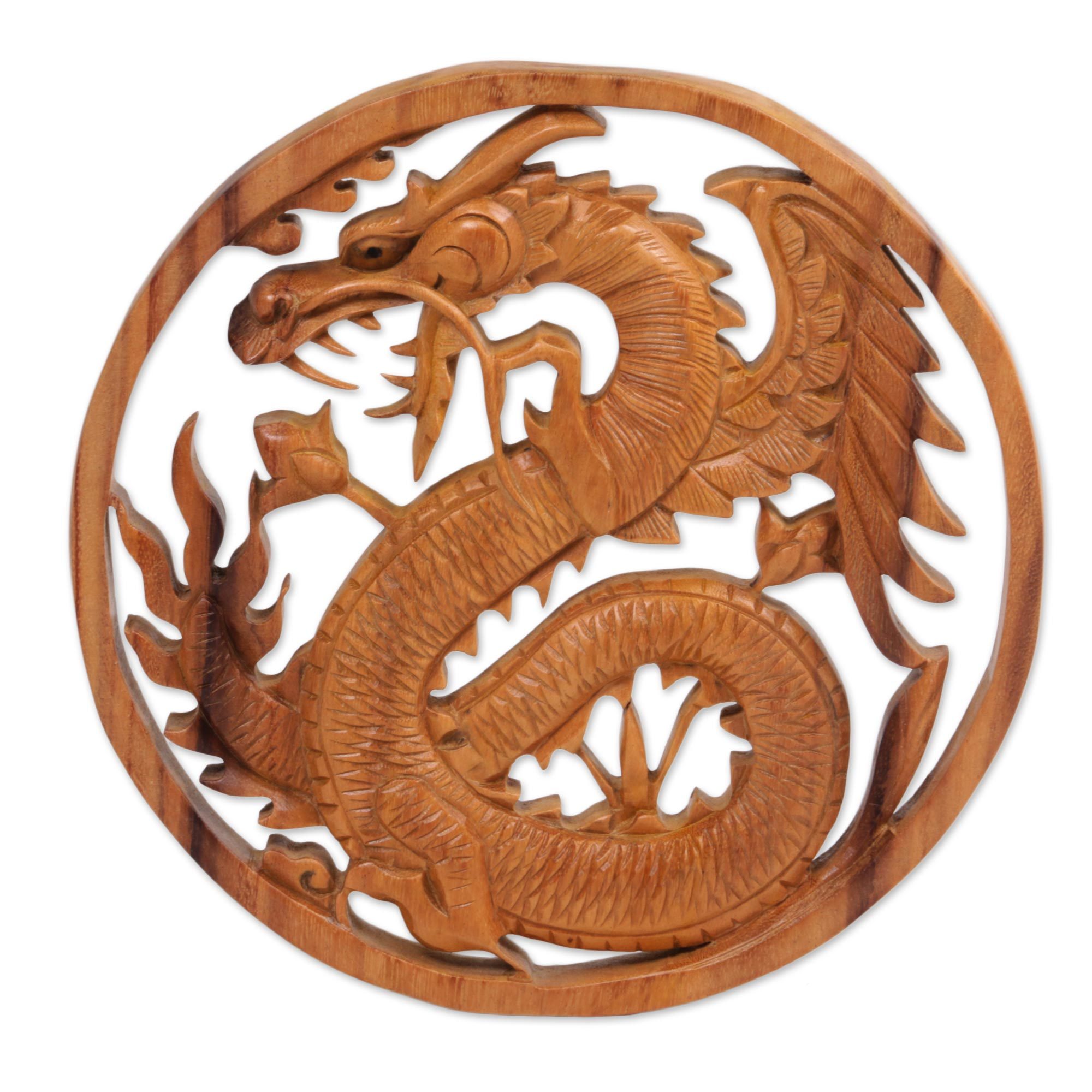 Suar Wood Wall Relief Panel of a Dragon from Indonesia, 'Enraged Dragon'