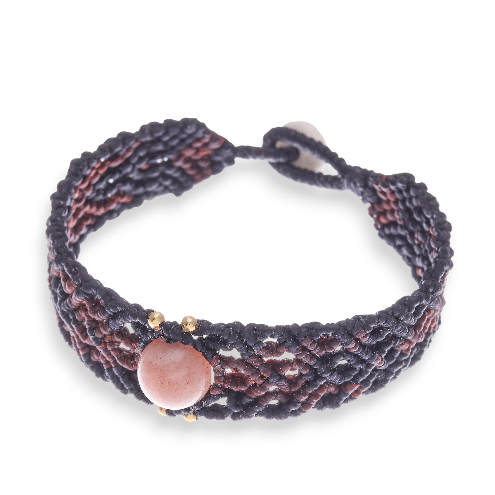 Sunstone Macrame Pendant Bracelet with Quartz Button Closure, 'Sunset Sensations'