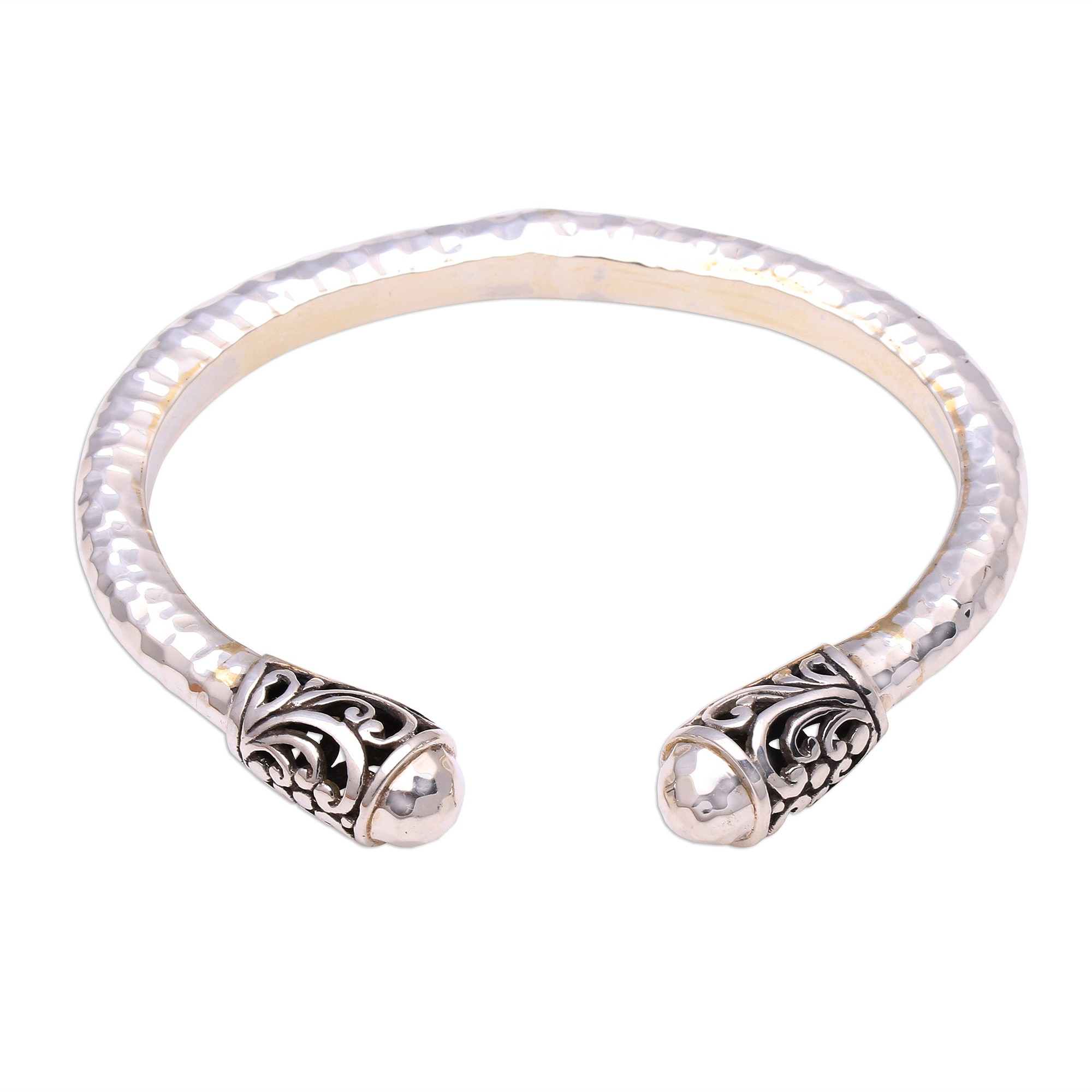 Swirl Motif Sterling Silver Cuff Bracelet from Bali, 'Bold Swirl'