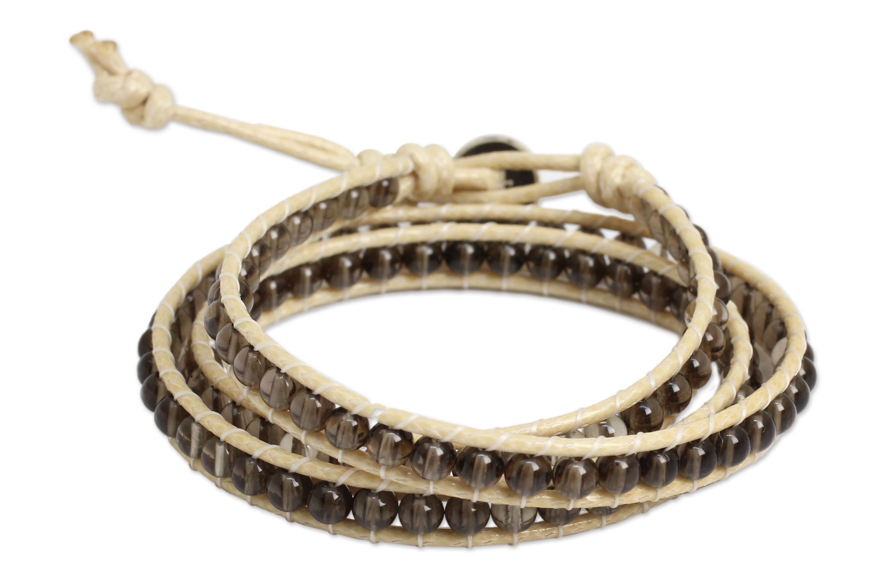 Thai Hand Knotted Smoky Quartz Wrap Bracelet, 'Subtle Sigh'