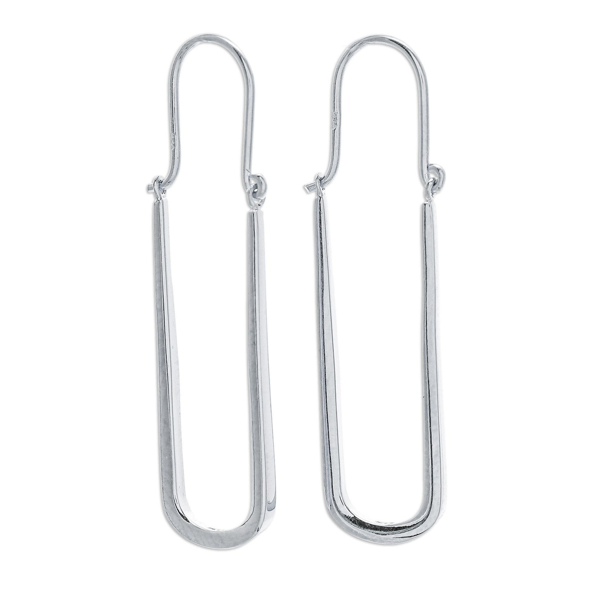 Thai-Made Minimalist Sterling Silver Oblong Hoop Earrings, 'Grand Class'