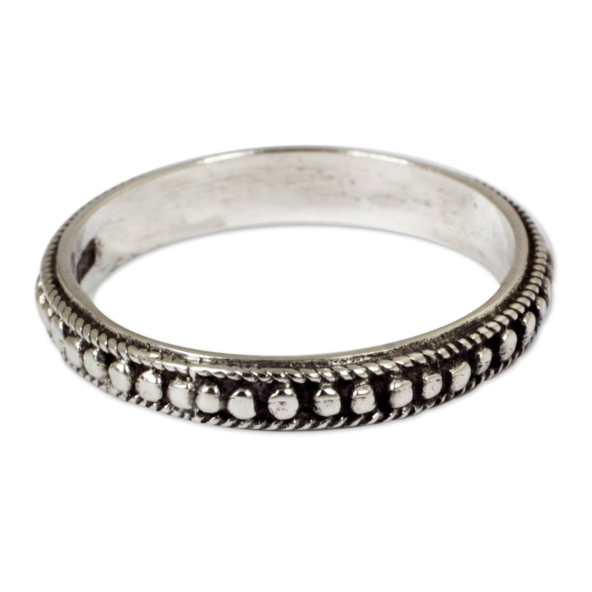Thai Sterling Silver Bead Design Band Ring, 'Circle of Stars'