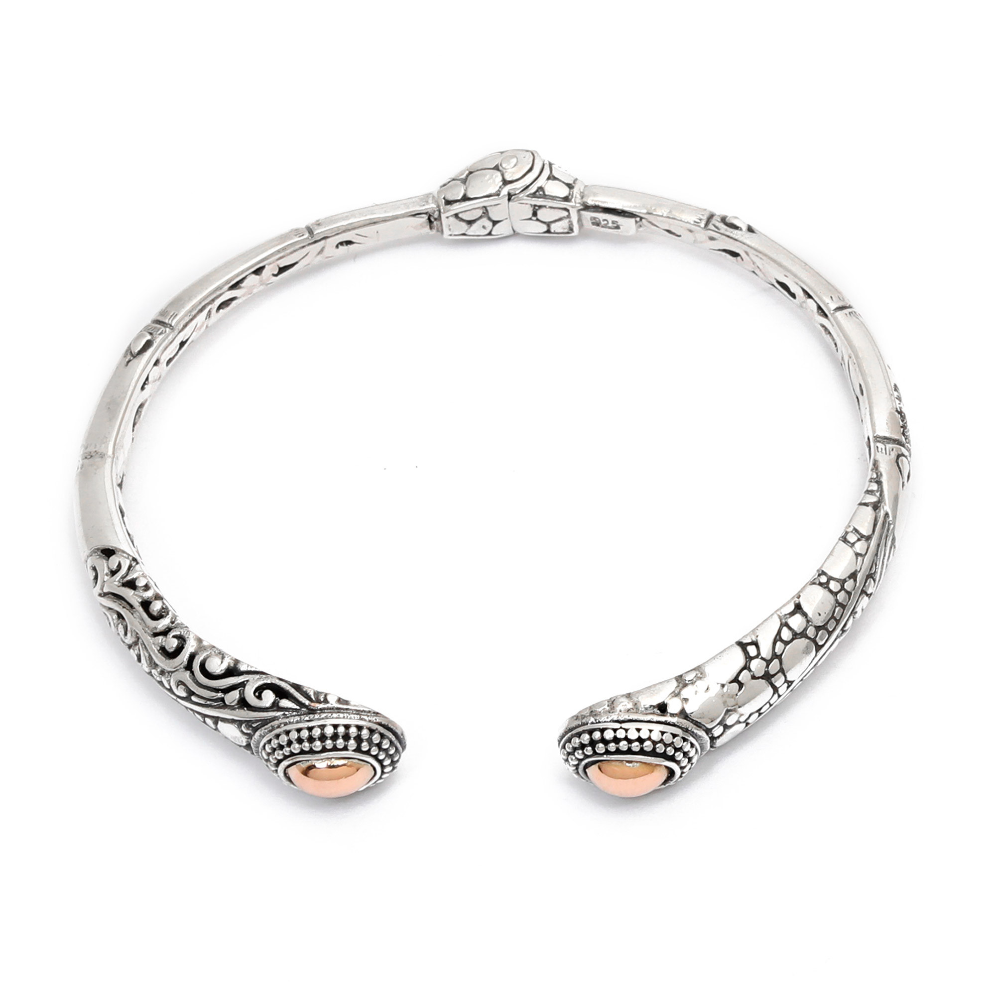 Traditional 18k Gold-Accented Sterling Silver Cuff Bracelet, 'Sparkling Bamboo'