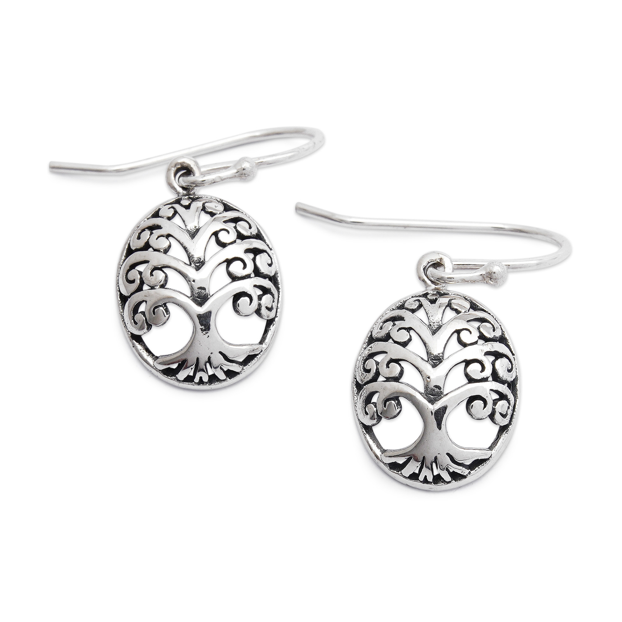 Tree of Life-Themed Oval Sterling Silver Dangle Earrings, 'Memory of Nature'