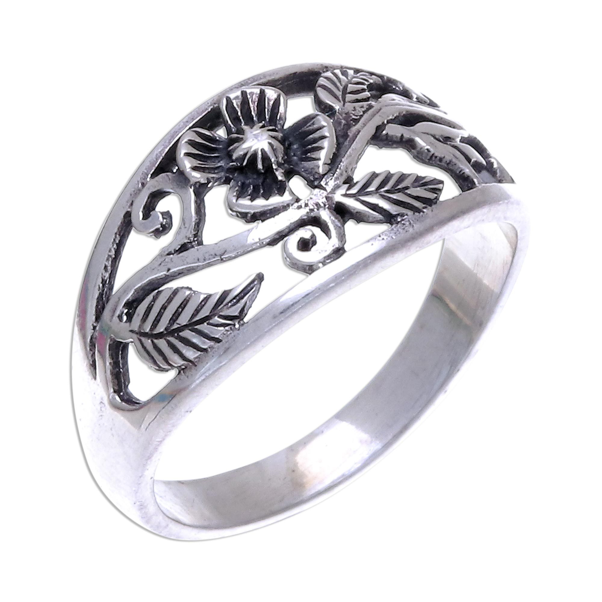 Unique Floral Sterling Silver Band Ring, 'Spring Daisy'