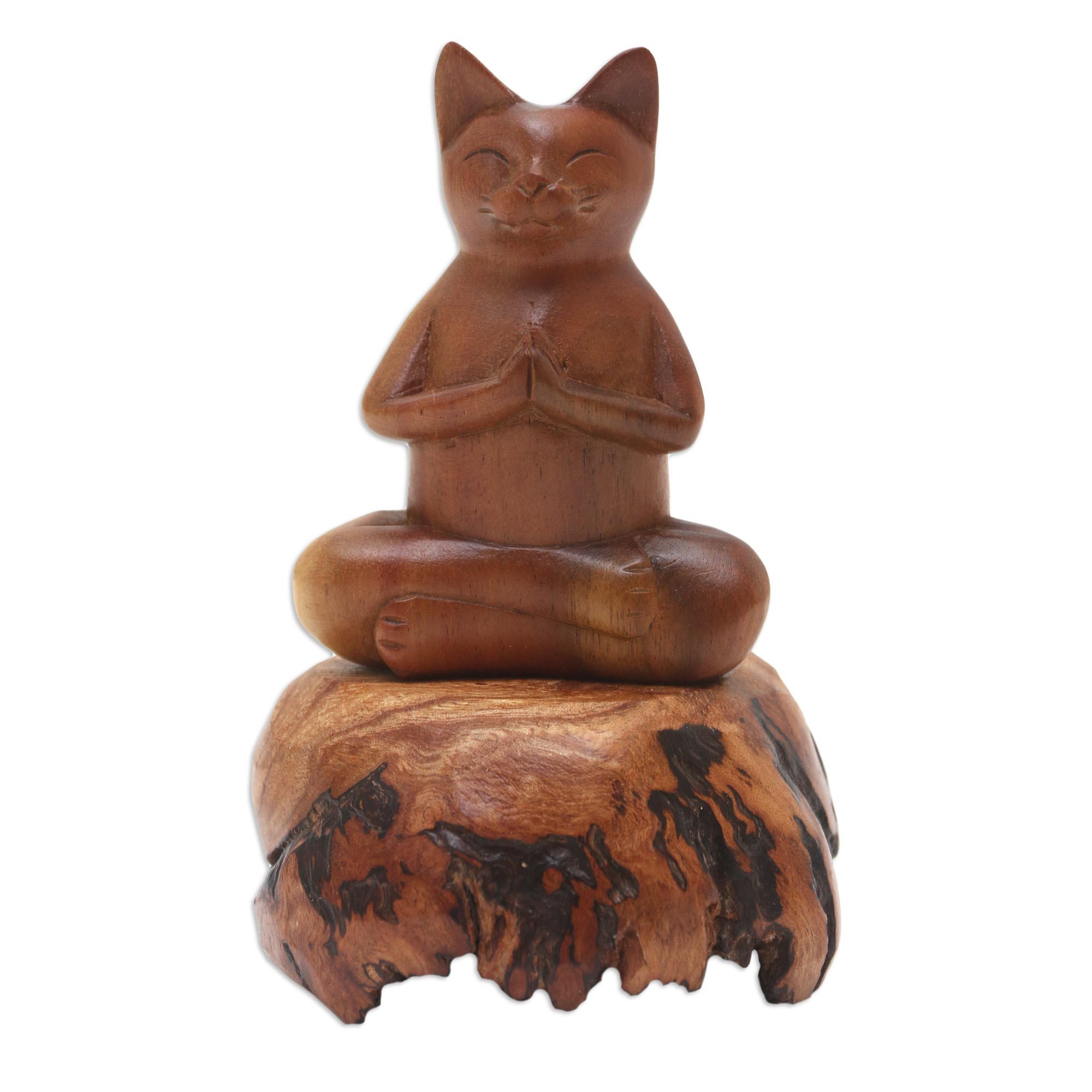 Unique Meditating Cat Sculpture, 'Morning Meditation'