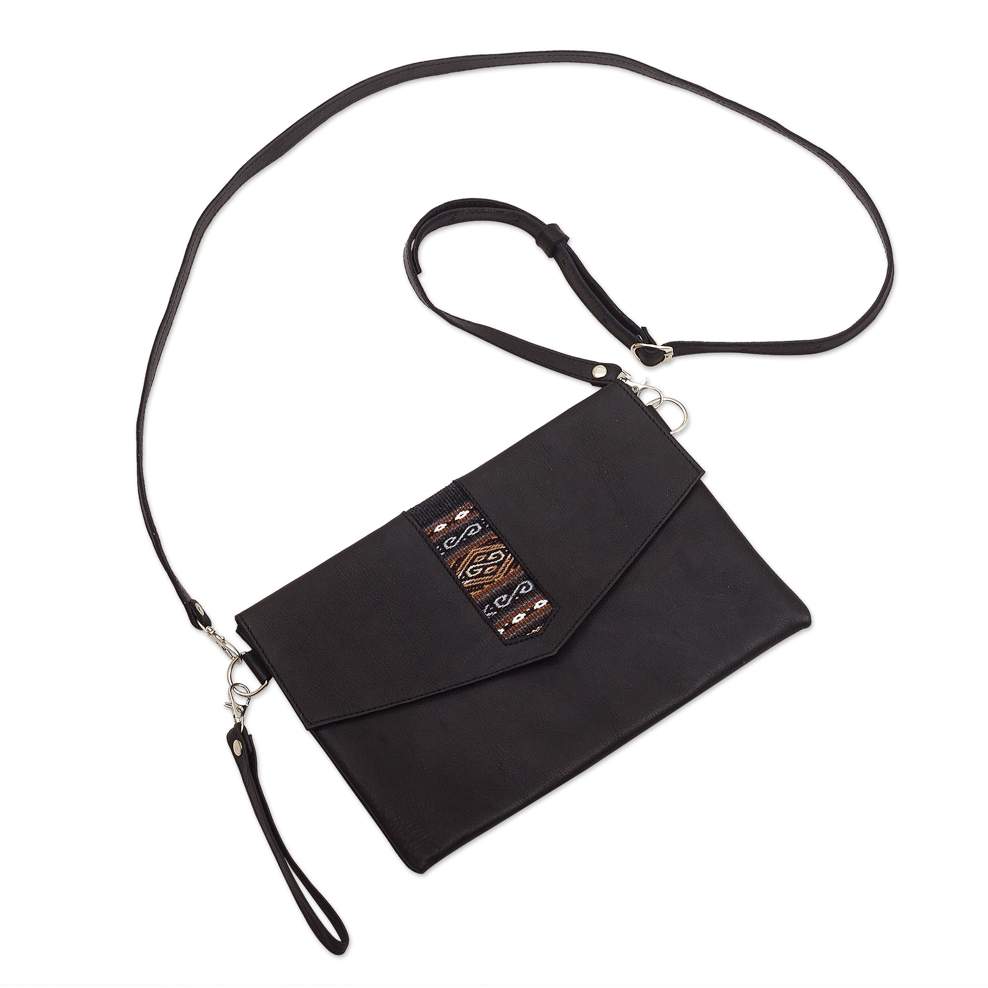 Versatile Leather Geometric Sling Bag from Peru, 'Mystic Black'