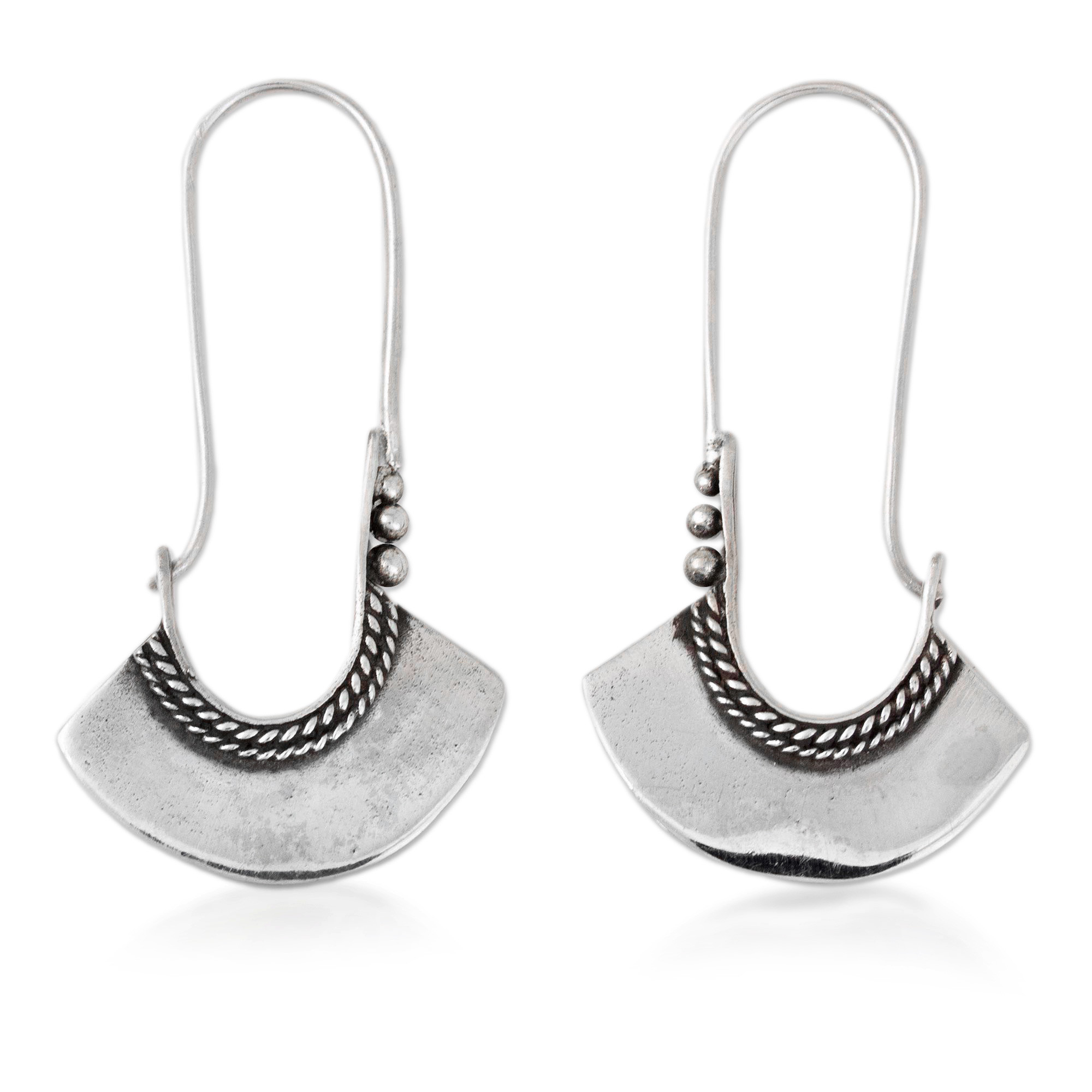 Women's Sterling Silver Hoop Earrings, 'Hollow Bell'