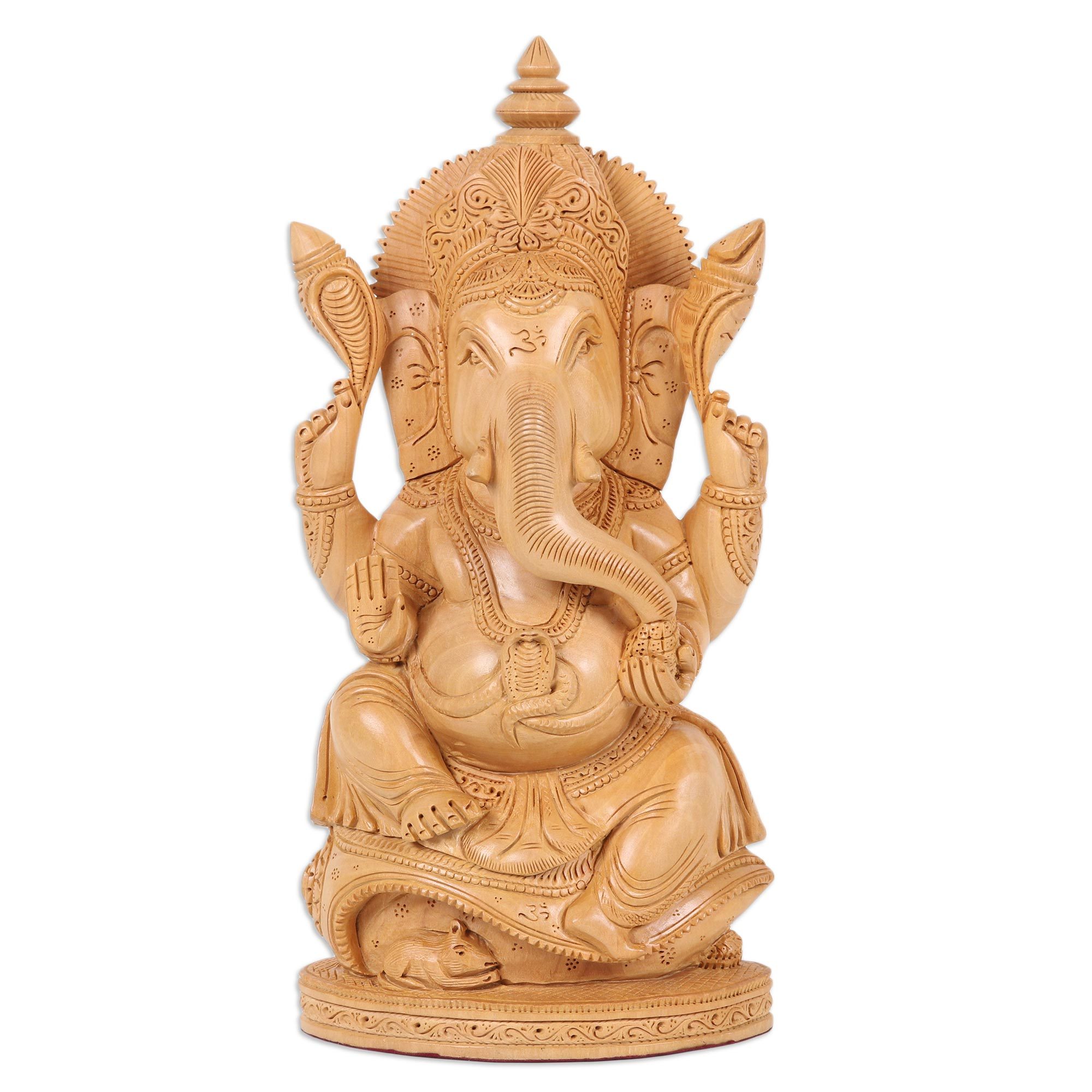 Wood Sculpture of Hindu God Ganesha Hand-Carved in India, 'Almighty Ganesha'