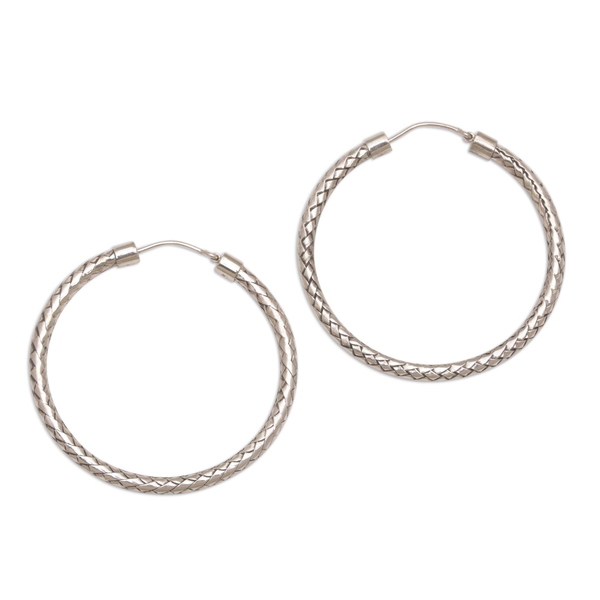 Woven Silver Endless Hoop Earrings (1.7 Inch), 'Celuk Circles'