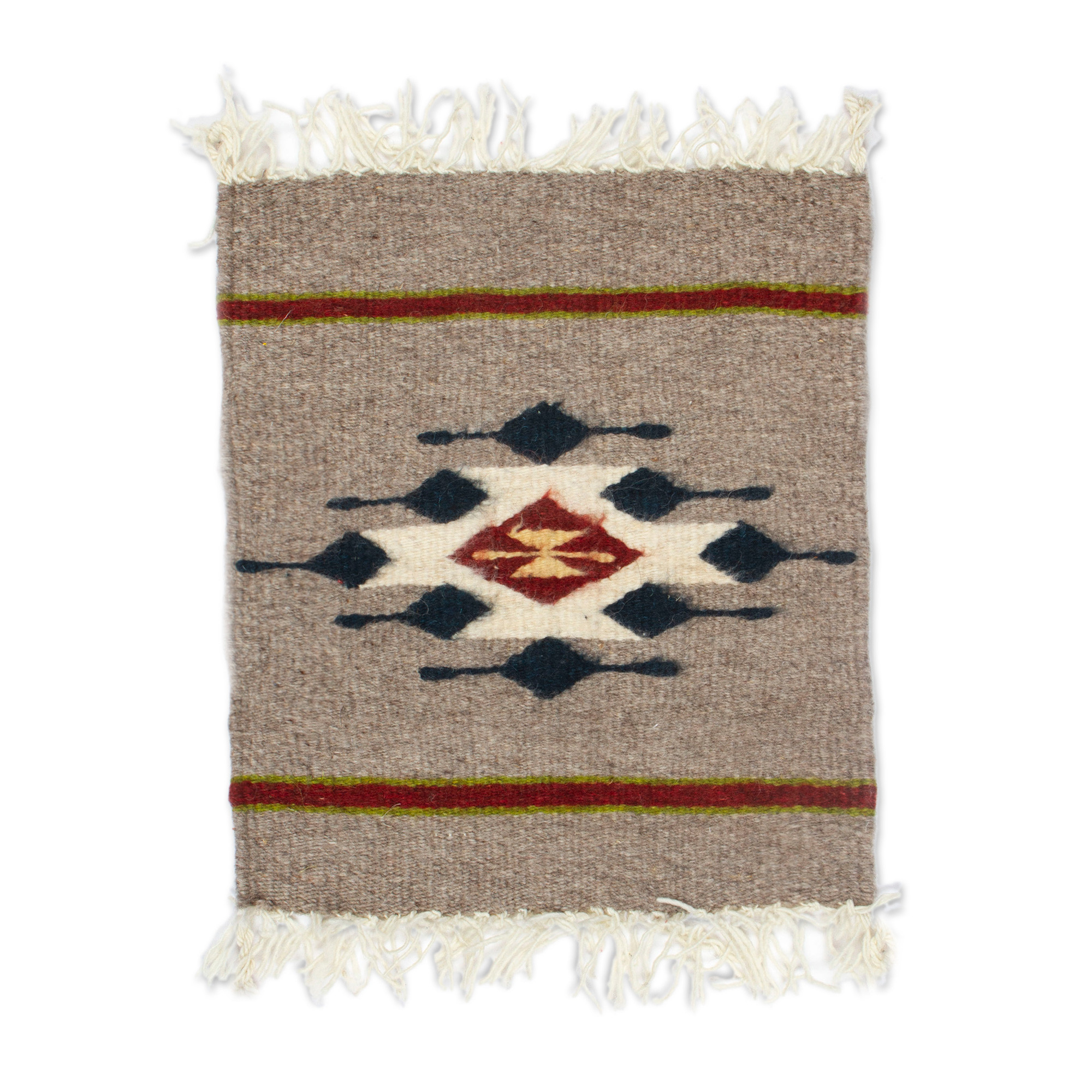Zapotec Diamond-Patterned Grey and Red Wool Area Rug (1x1), 'Diamond of Magnificence'